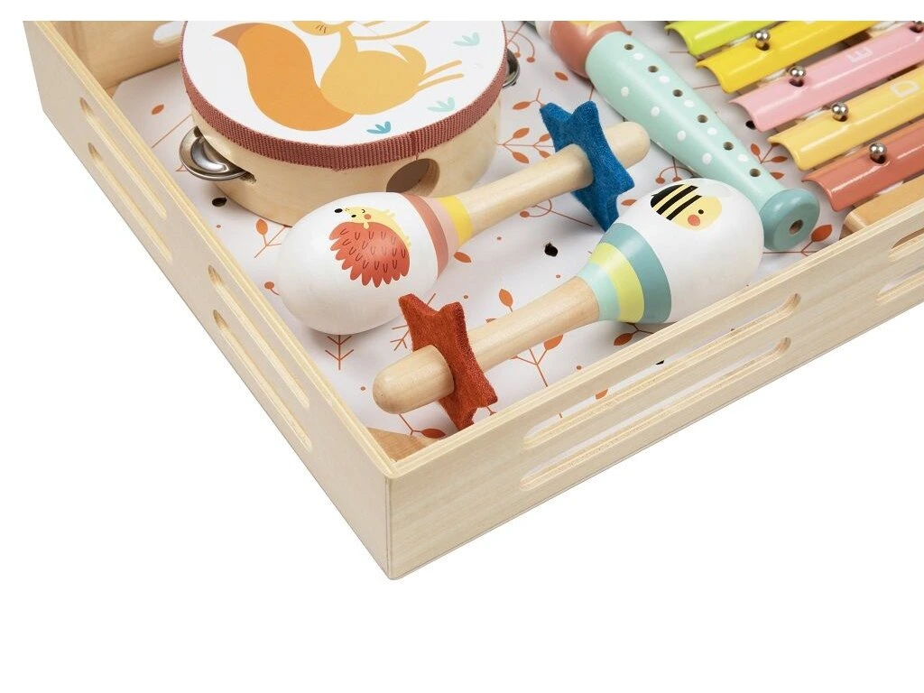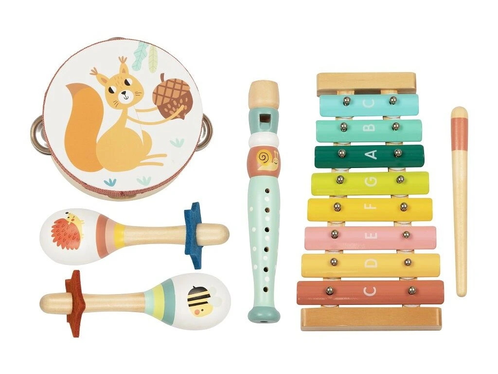Nádherná sada pro malé hudebníky už od 18 měsíců, kteří se chtějí učit základy rytmu, zvuků a tvořivosti hravou formou. Sada zahrnuje pestrou škálu nástrojů, jako je tamburína, fletníčka nebo xylofon, vše v designu lesních zvířátek, který děti okouzlí a inspiruje.