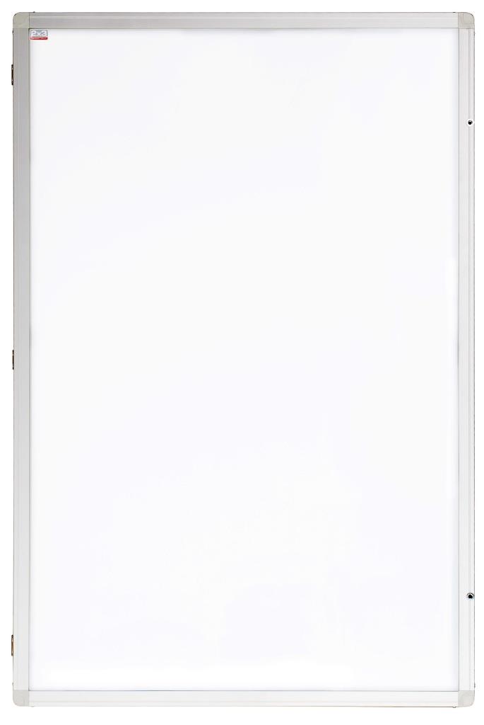 Interiérová vertikální vitrína ECO s robustním hliníkovým profilem UKF, plastovými rohovými spojkami. Vnitřní výplň magnetický lakovaný bílý plech se zárukou na povrch 10 let. Polykarbonátové sklo. Uzamykatelná pomocí imbusového klíče.