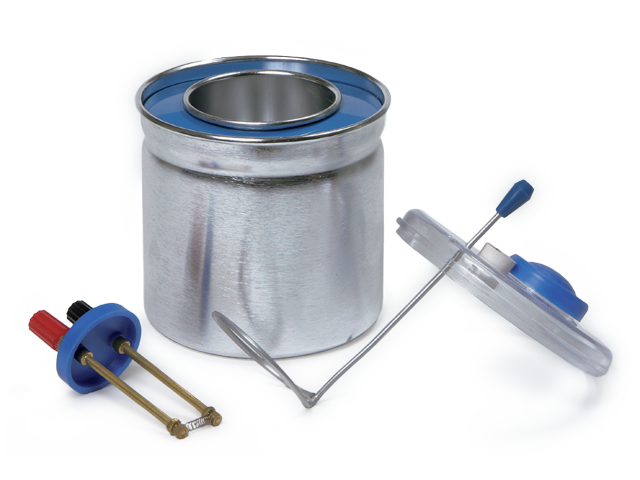 Dvojitá hliníková nádobka má izolační výplň z polystyrénu, transparentní plastové víko s míchadlem, otvorem pro teploměr, otvor s gumovým uzávěrem pro termočlánek. Volitelně je použitelná topná spirála s zdířkami 4 mm.
