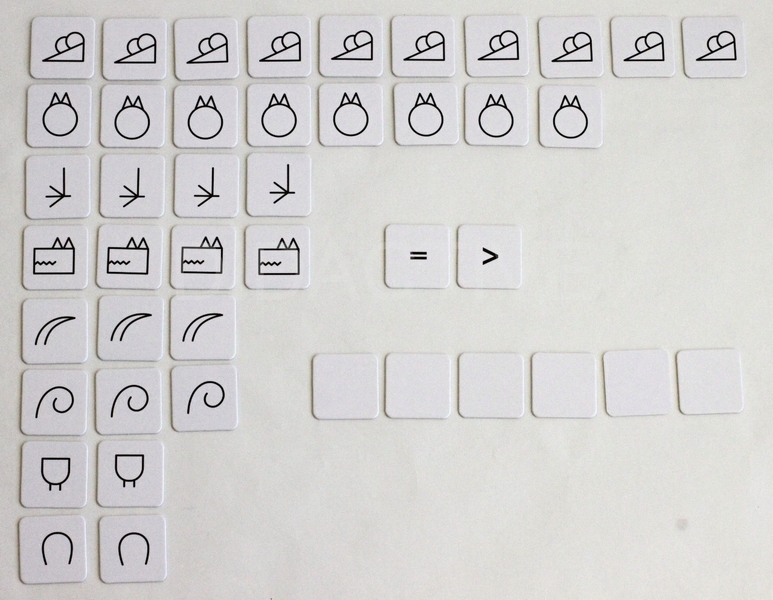 Sada obsahuje 44 pevných kartiček s ikonami zvířátek o rozměru cca 3x3cm. Sada je dodávána jako 4 archy velikosti A5, ze kterých jednoduše "vylomíte" jednotlivé kartičky. Kartičky jsou dostatečně velké, aby je děti snadno uchopily, zároveň ne příliš velké, takže se s nimi na lavici dobře pracuje.