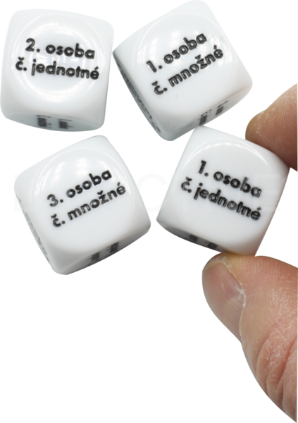 Bílé kostky s označením mluvnické osoby a čísla 4ks