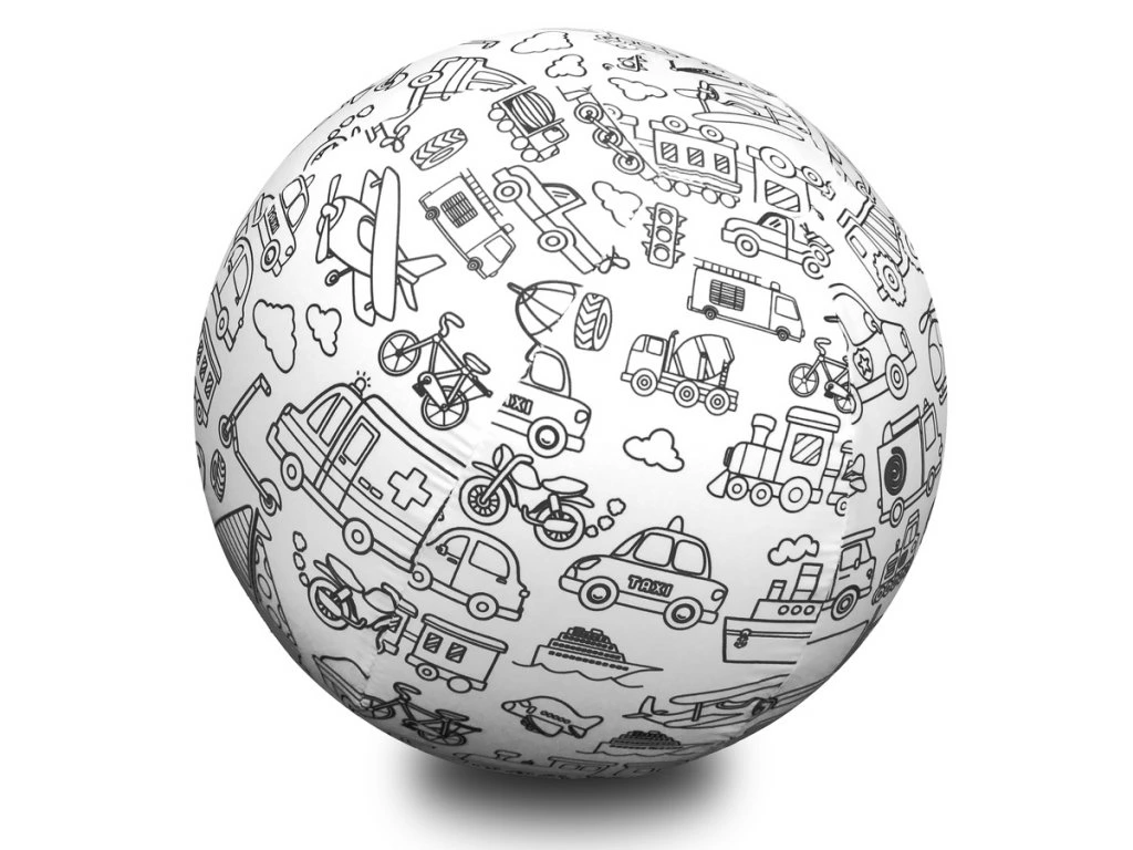 Jedinečný míč k domalování nabízí novou dimenzi zábavy, která kombinuje kreativní práci a pohybovou aktivitu. Vložte nafukovací balónek do potahu na míč, nafoukněte a nechejte děti vybarvit obrázky podle vlastní fantazie. S míčem si můžete hrát uvnitř i venku.