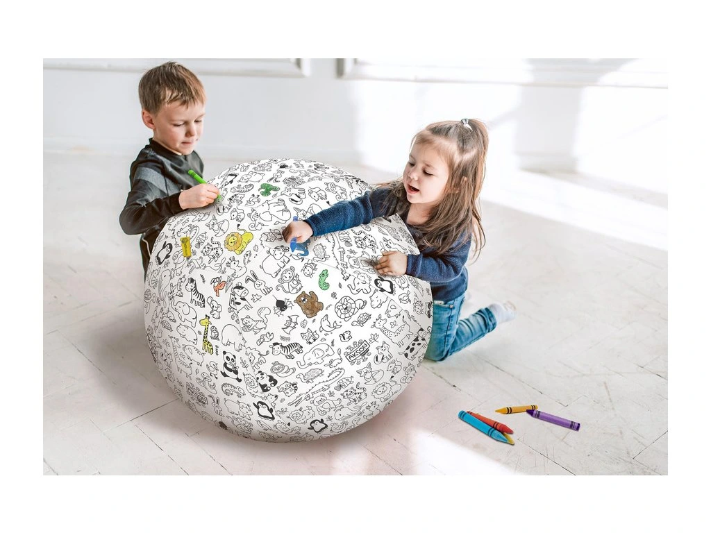 Jedinečný XXL míč k domalování nabízí novou dimenzi zábavy, která kombinuje kreativní práci a pohybovou aktivitu. Vložte nafukovací balón do potahu na míč, nafoukněte a nechejte děti vybarvit obrázky podle vlastní fantazie. S míčem si můžete hrát uvnitř i venku.