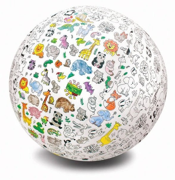 Stačí vložit nafukovací balón do textilního potahu, nafouknout a nechat děti vybarvit obrázky podle vlastní fantazie. S míčem si pak mohou bezpečně hrát v interiéru i venku.