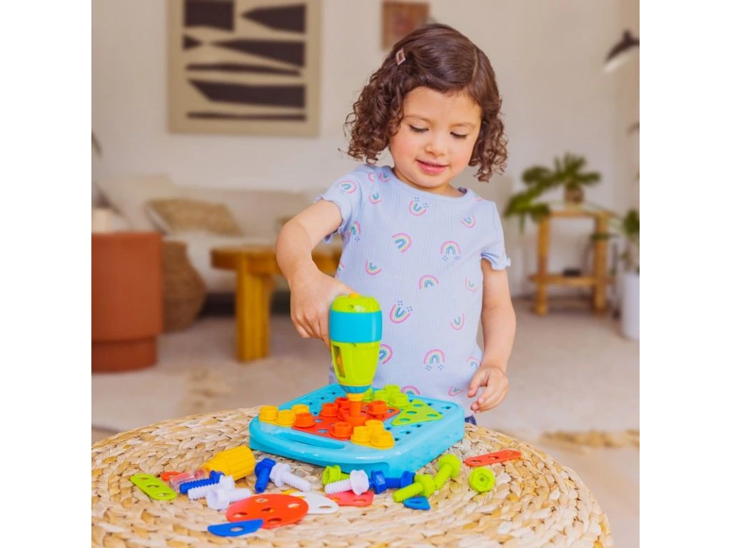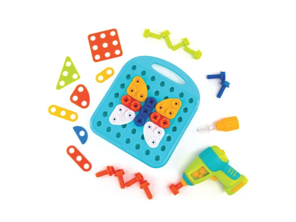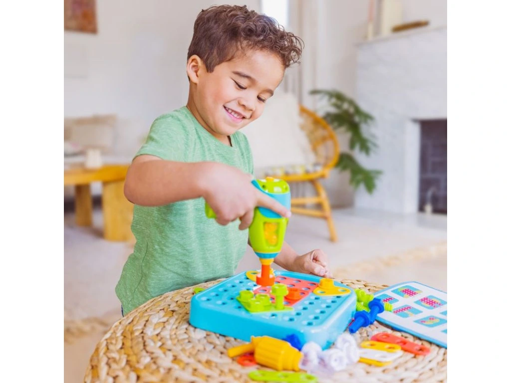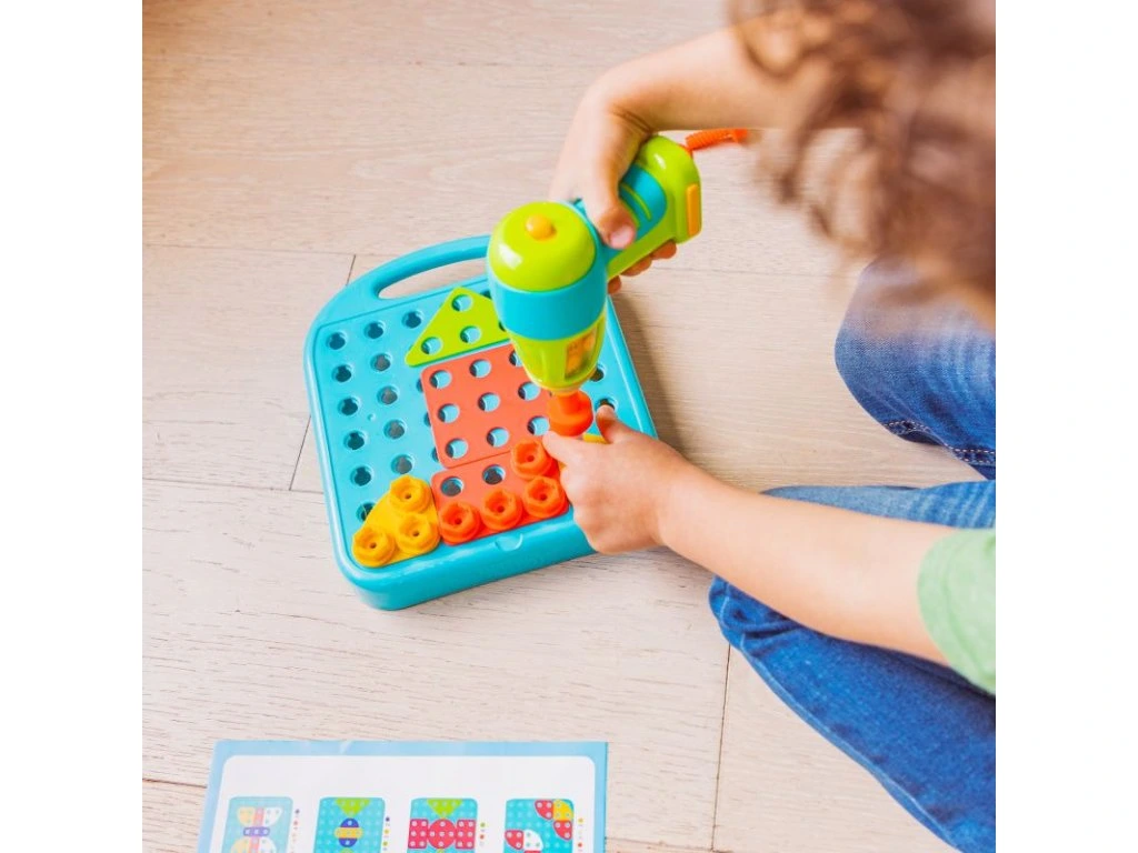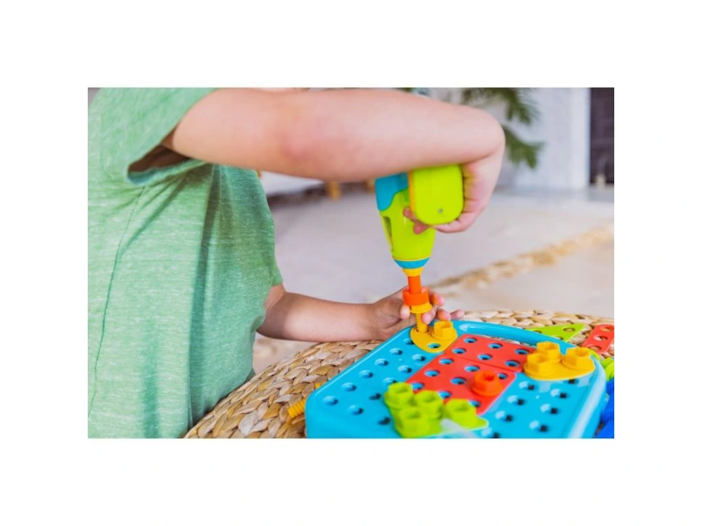 Kreativní, konstrukční hra - děti používají vrtačku, tvary a šrouby k vytvoření přiložených vzorů nebo k tvoření dle vlastní fantazie. Mohou tak povolit uzdu své kreativitě i fantazii!