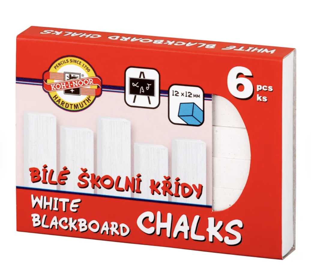 Školní bílé křídy Křídy 111505/6 – sada 6 čtyřhranných kříd pro psaní na školní tabule. Vhodné pro MŠ, ZŠ i domácí použití.