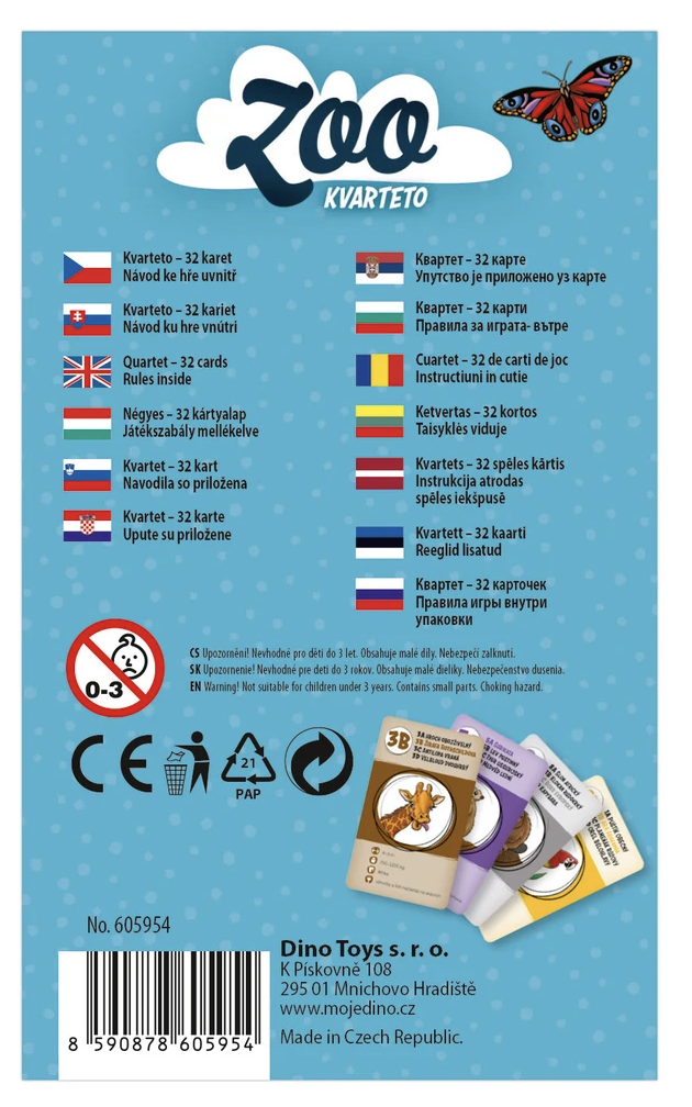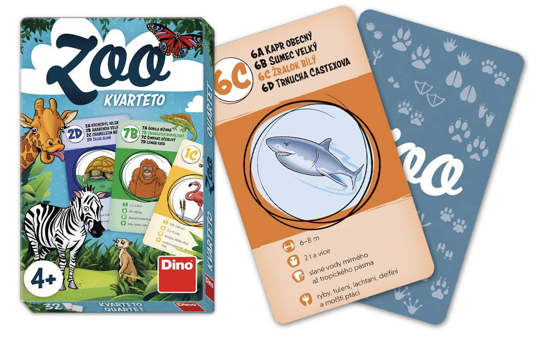 Každodenní návštěva zoo vás nemusí vyjít vůbec draho. Stačí mít doma v šuplíku zoo kvarteto, díky kterému se děti mohou setkávat s exotickými živočichy, kdykoliv se jim zachce. Žirafa, slon, tygr i orangutan už se těší, až si oblíbenou karetní hrou pro děti zpestříte pohodové odpoledne.