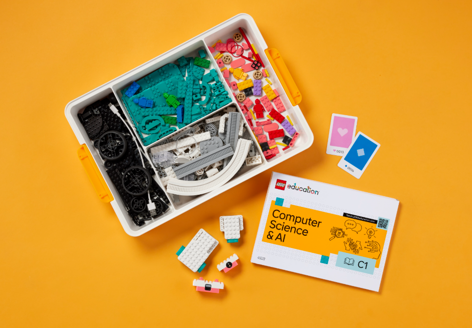 LEGO® Education 45522 Computer Science & AI (věk 8+) je výuková sada pro týmovou práci 4 žáků, obsahuje 40 výukových hodin s lekcemi o stavění modelů, algoritmy a principy AI. Podporuje spolupráci, kritické myšlení a porozumění technologiím v každodenním životě.