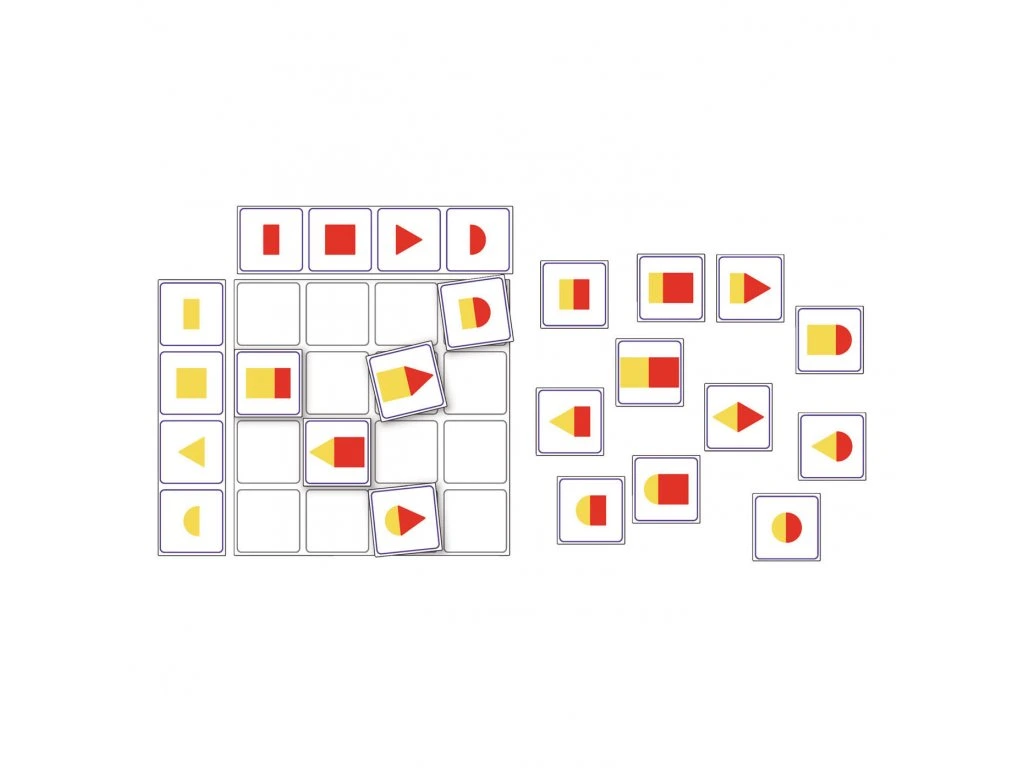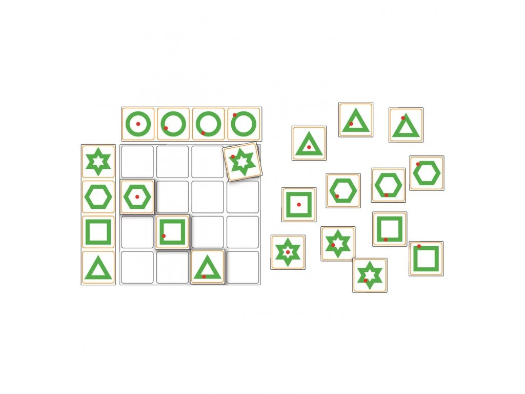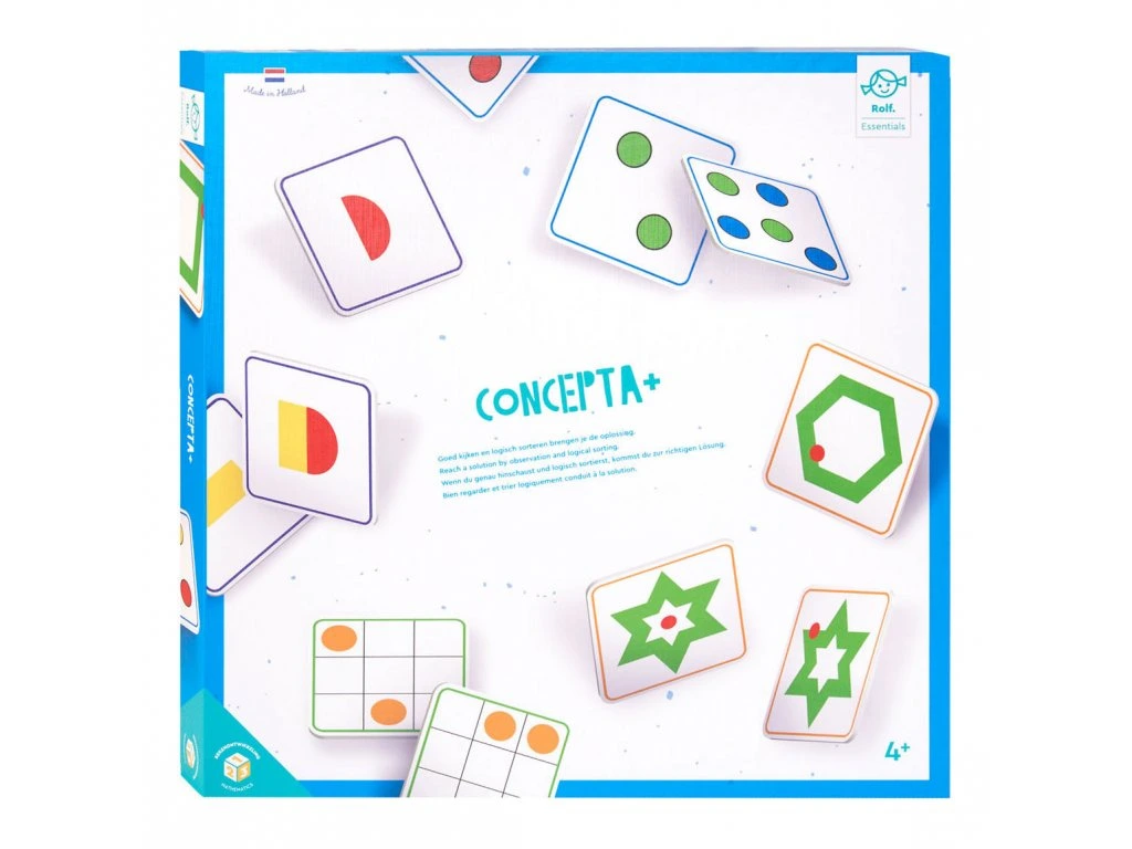 Concepta+ od Rolf Education je vzdělávací hra, která rozvíjí logické myšlení a kreativitu dětí! Hra je určena pro dvě děti a tvoří ji 2 základní desky, zadávací úkolové karty a žetonky. Úkolem je vložit do správného místa správnou kombinaci, která logicky odpovídá zadání. Kombinujete barvy, počty a tvary.