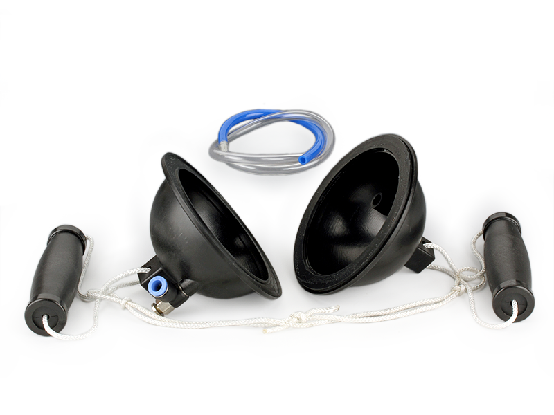 Magdeburské polokoule jsou vyrobené z vysoce odolného plastu ABS. Na každé polokouli je očko, ke kterým jsou pomocí provázku přichycena madla. Mezi polokoulemi je gumové těsnění. Jedna polokoule je vybavena odvzdušňovacím šroubem a zpětným ventilem.
