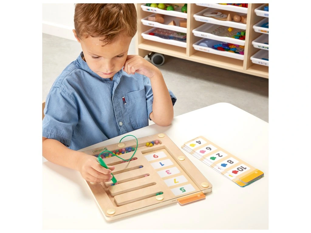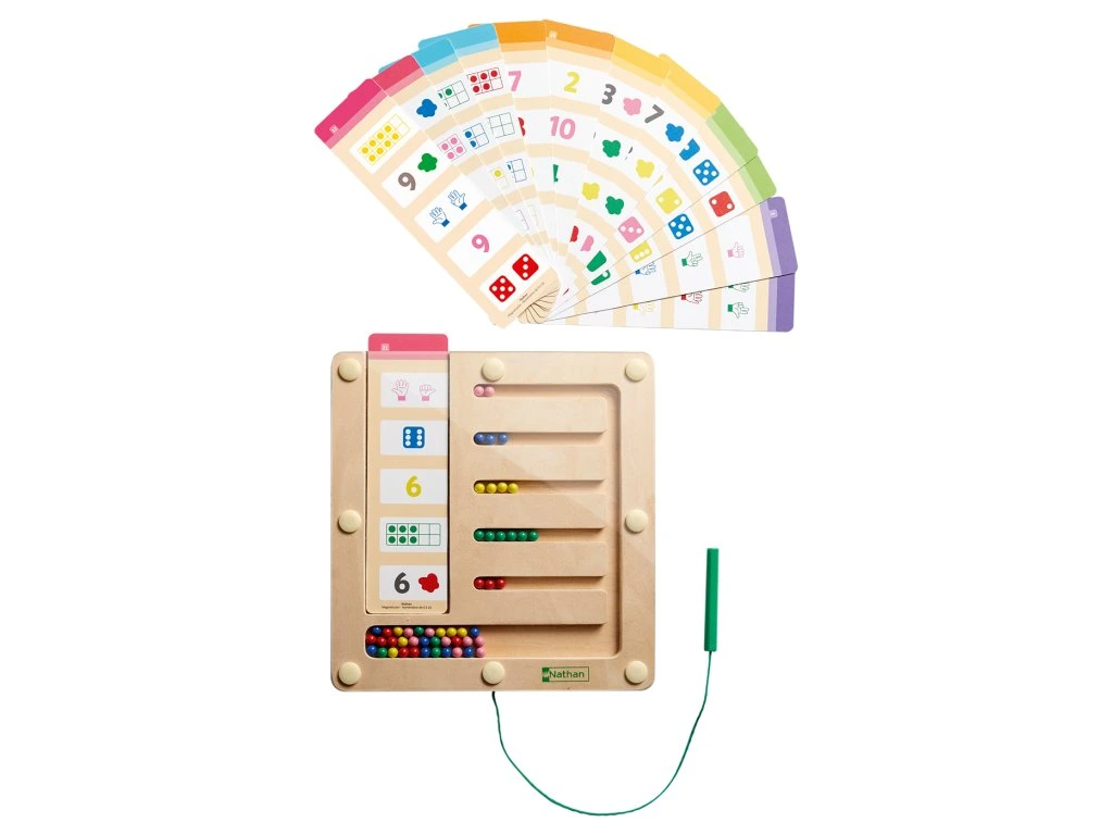 Tato kreativní dřevěná magnetická hra pomáhá dětem pochopit čísla a barvy zábavnou formou. Pomocí magnetického pera přemisťují kuličky po dráze a přiřazují je k číslům 0–10. Skvělý způsob, jak rozvíjet logické myšlení, koordinaci ruky a oka i jemnou motoriku.