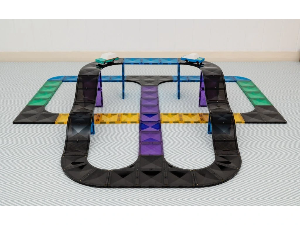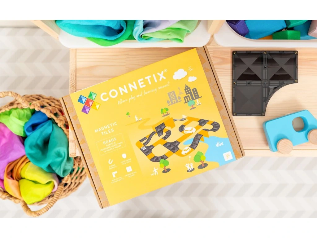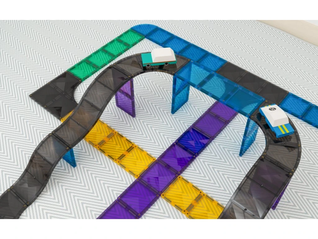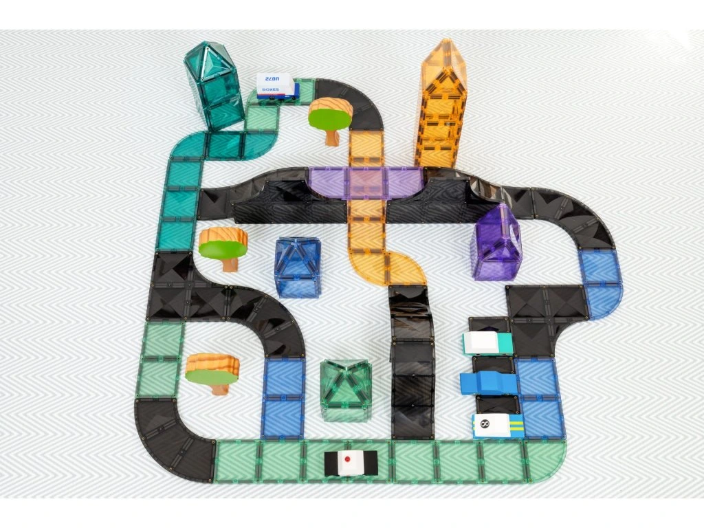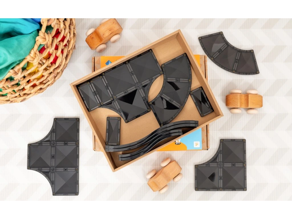 Sada nabízí křižovatky, rampy a zatáčky, se kterými mohou děti postavit různé silnice, rampy nebo závodní okruh. Díky silným magnetům a kvalitnímu zpracování je tato sada ideální pro hodiny zábavy i vzdělávání. Všechny dlaždice jsou vyrobeny z netoxického ABS plastu, který neobsahuje BPA a ftaláty, jsou utěsněny a nýtovány pro větší bezpečnost.