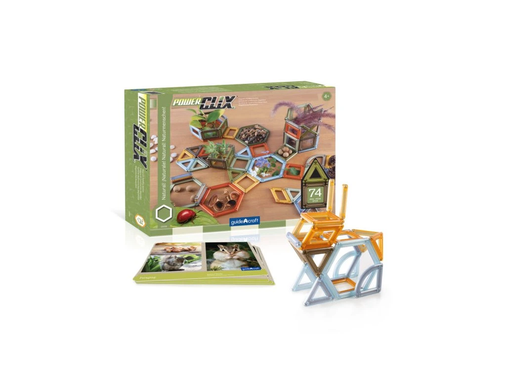 Prvky přirozené hry a teorie volných dílů s inovativní platformou STEM pro stavění hraček PowerClix. Díky organickým neutrálním barvám podporuje děti, aby stavěly architektonické stavby pomocí známých tvarů. Děti mohou vytvářet neomezené 3D formy tím, že vizualizují základní návrhovou strukturu objektu a poté vytvoří jeho drátěný model pomocí magnetických rámů geometrických tvarů. Uspořádejte a skladujte kusy PowerClix snadno pomocí nové kovové desky zabudované přímo do obalu. Kovová deska může být také použita jako stavební základ.