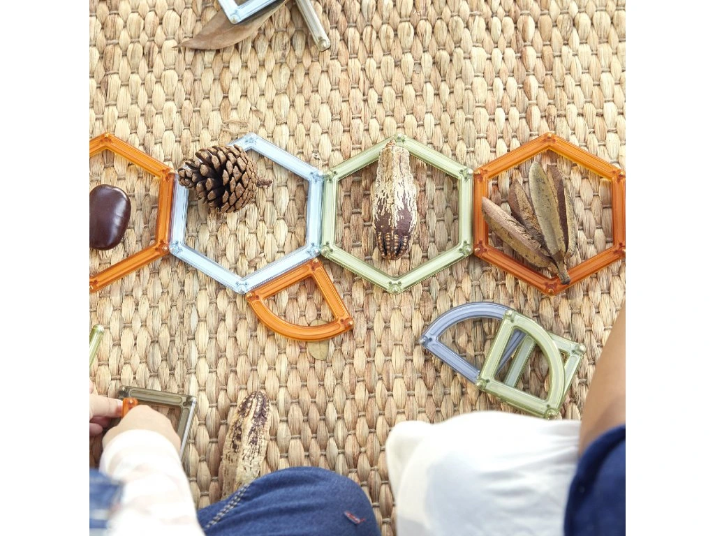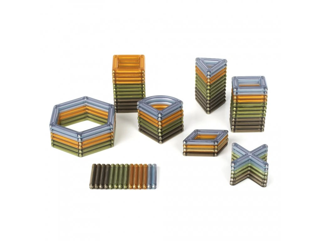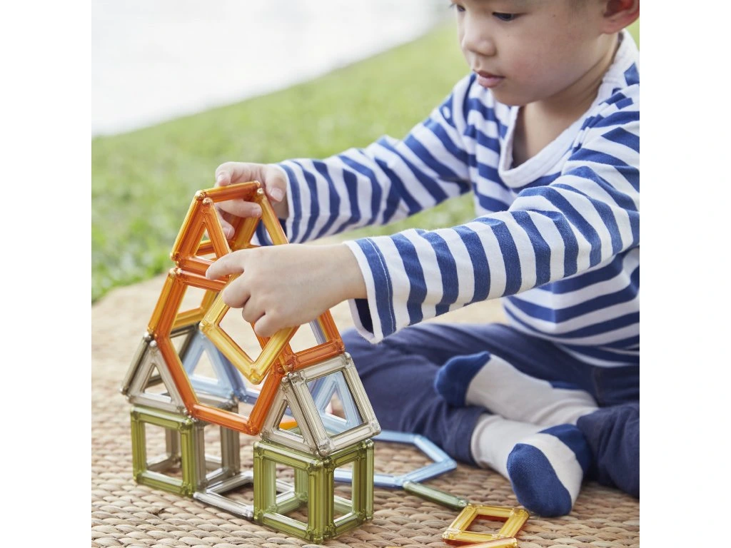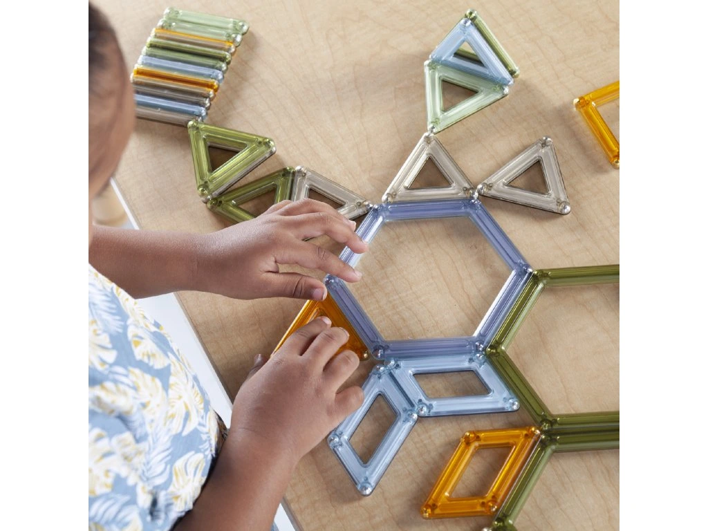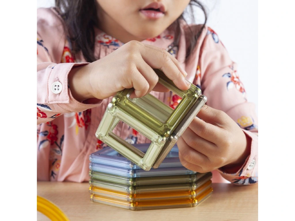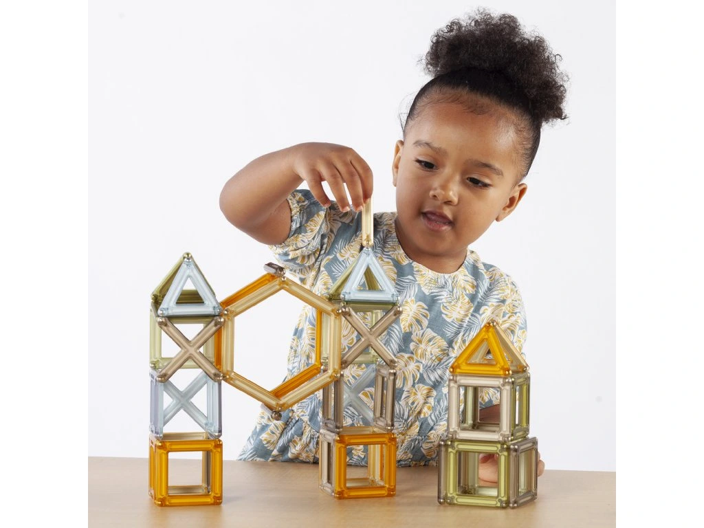 Inovativní STEM magnetická stavebnice s krásnou přírodní paletou barev, která rozvíjí u dětí představivost. Můžou s ní vytvářet 3D stavby nebo geometrické tvary.