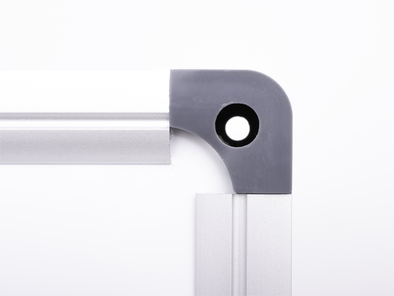Robustní rohové spojky pro připevnění na zeď s designovými krytkami.