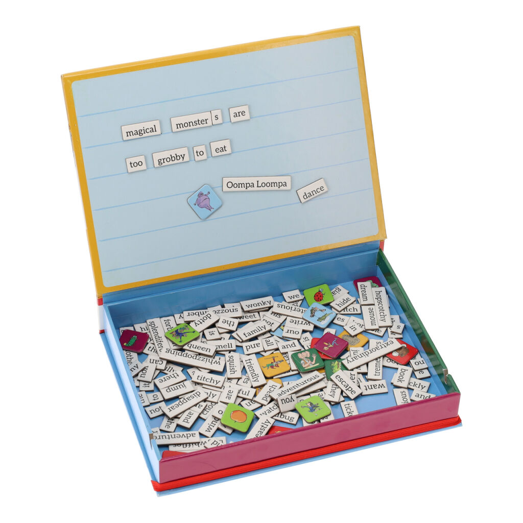 Sestavte rozverný příběh, nebo báseň pomocí pojmů užívaných v knihách Roalda Dahla. Vybírejte ze stovek magnetek se slovy a obrázky, sázejte je do řádků a tvořte originální sousloví. Hru zdobí původní, originální ilustrace z knih. Je v anglickém jazyce a je vhodnou pomůckou k procvičování angličtiny. Tabulka je společně s magnetky uložena v praktické krabičce, a je tak připravena Vás doprovázet i na cestách. Vyrobeno z udržitelně získaného papíru, potištěno rostlinnými inkousty.