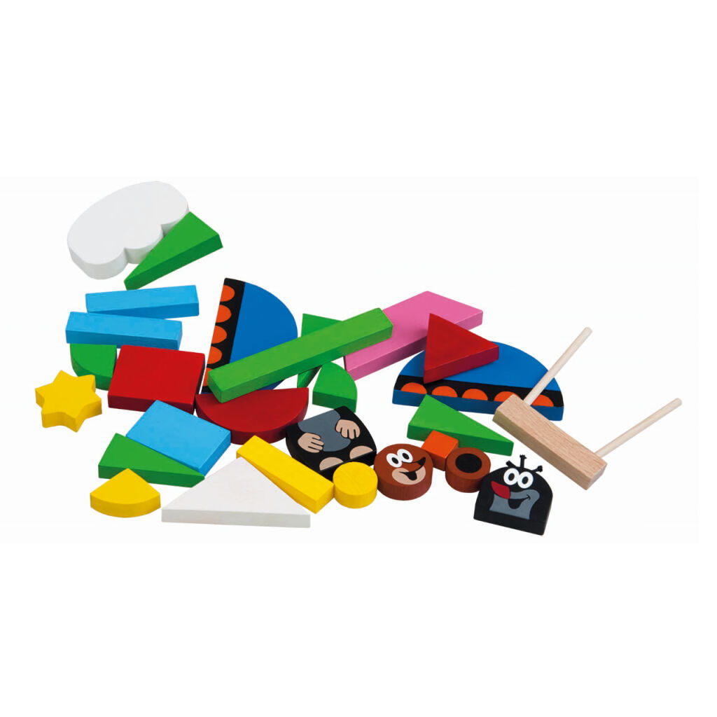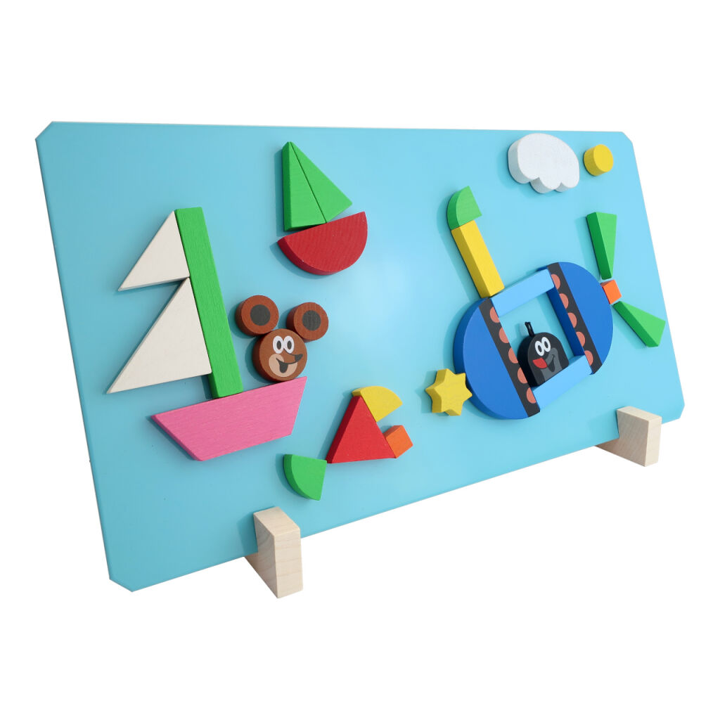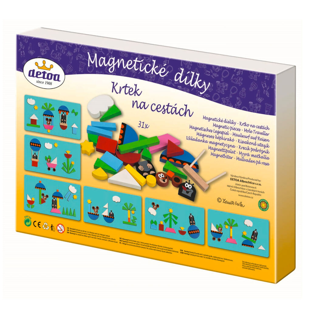 Dřevěné dílky podlepené magnetem na motivy Krtečka a Myšky.