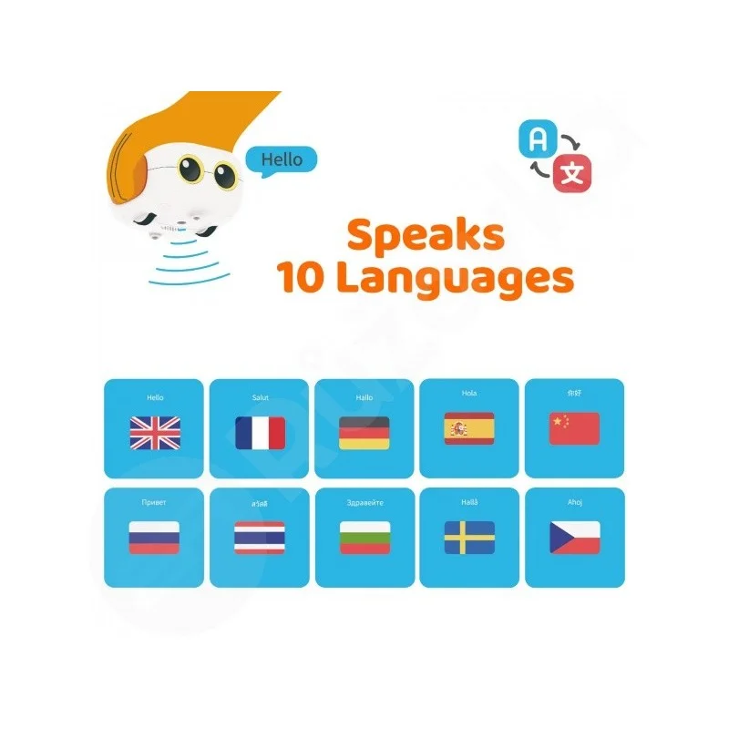 Tale-Bot Pro je inovativní interaktivní robot pro vzdělávání, který kombinuje zábavu a učení. S množstvím barevných tlačítek na vrchní straně robota mohou děti ovládat jeho pohyby, kreslit, zpívat, tancovat a dokonce nahrávat. Interaktivní mapa poskytuje jedinečný prostor pro učení a robot dokáže mluvit ve 11 různých jazycích, což zajišťuje mezinárodní přístup.