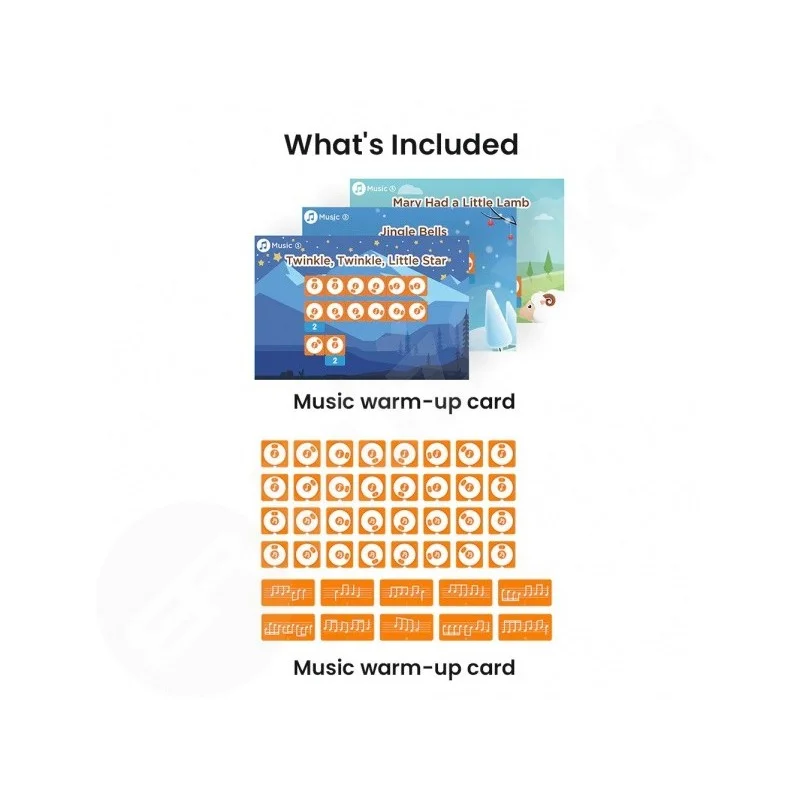 Obsah balení sady zahrnuje 32 kódovacích bloků s notami od Do po Si ve 2 oktávách, 10 bloků s melodií a karty s písničkami. Tyto prvky poskytují dětem širokou škálu možností pro vytváření a objevování hudby.
