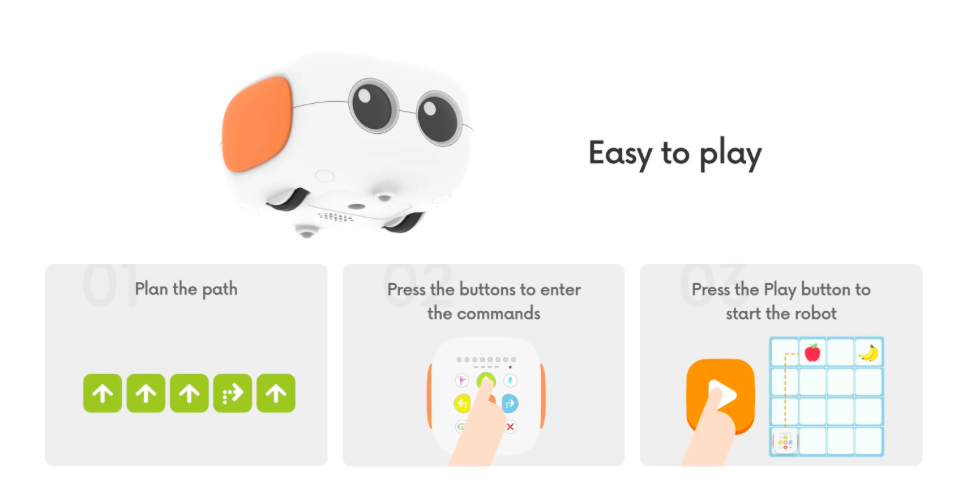 Tale-Bot Pro je snadno ovladatelný pomocí příkazových tlačítek. Stačí naplánovat cestu, zadat příkazy a stisknout tlačítko Play pro spuštění robota. Robot Tale-Bot Pro je vybaven interaktivní technologií Smart OID a je vyroben z bezpečného, ekologického materiálu. Je robustní a odolný proti pádům, zajišťuje bezpečnost dětí bez obsahu olova.