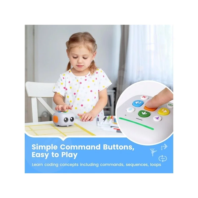 Tale-Bot Pro je snadno ovladatelný pomocí příkazových tlačítek. Stačí naplánovat cestu, zadat příkazy a stisknout tlačítko Play pro spuštění robota. Robot Tale-Bot Pro je vybaven interaktivní technologií Smart OID a je vyroben z bezpečného, ekologického materiálu. Je robustní a odolný proti pádům, zajišťuje bezpečnost dětí bez obsahu olova.