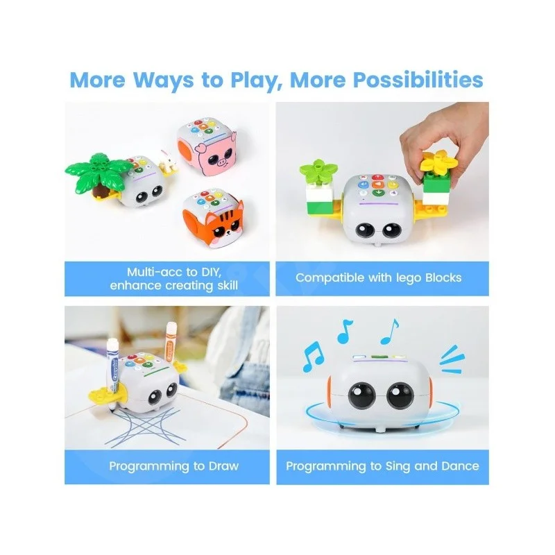 Tale-Bot Pro je interaktivním robotem určeným pro děti předškolního věku. S různými zábavnými kódovacími hrami a interaktivními scénáři se děti snadno seznámí s principy programování, jako jsou příkazy, sekvence a smyčky. Robot Tale-Bot Pro je vybaven OID senzorem, který mu umožňuje rozpoznávat konkrétní mapu nebo samolepku. Díky tomu interaktivně komunikuje s dětmi v češtině, poskytuje instrukce a zpětnou vazbu. Navíc, díky funkci nahrávání a vyprávění příběhů, podporuje rozvoj kreativity a vypravěčských dovedností.