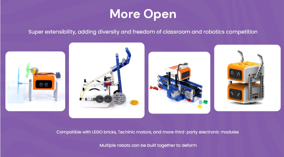VinciBot je také otevřeným systémem, který umožňuje stavět a deformovat více robotů současně. Je kompatibilní s LEGO kostkami, Technic motory a dalšími elektronickými moduly třetích stran. To otevírá nové možnosti a rozšiřuje kreativitu při tvorbě a programování robotů.