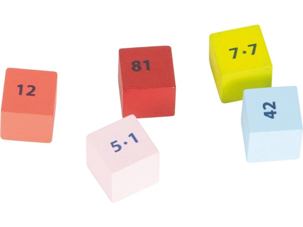 Potrénujte s dětmi násobilku trochu jinou formou. Dřevěné kostičky Vám z jedné strany ukáží příklad násobilky a na druhé straně po otočení najdete správný výsledek. Vyrobeno z robustního dřeva v nových zářivých barvičkách. Díky dřevu je extra odolné! Nemusíte dětem pouze zadávat příklady, ale zkuste je třeba zaúkolovat tím, aby Vám složily všechny násobky 6ti. Děti navíc díky kostičkám pochopí princip násobení.