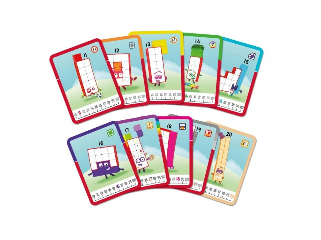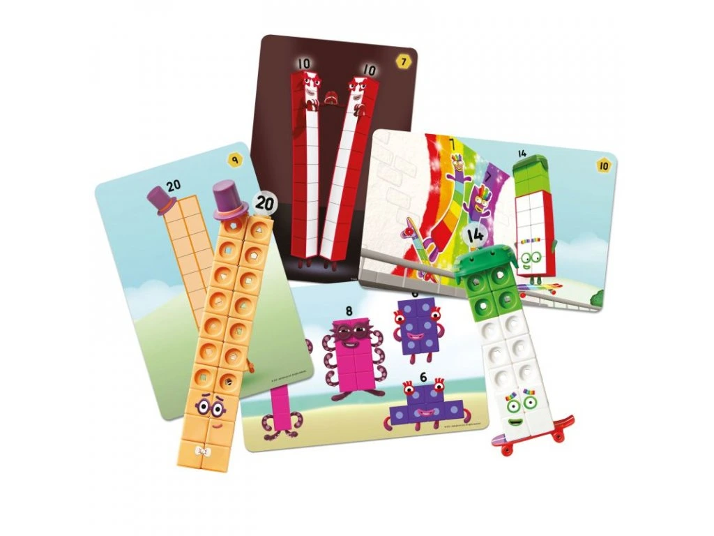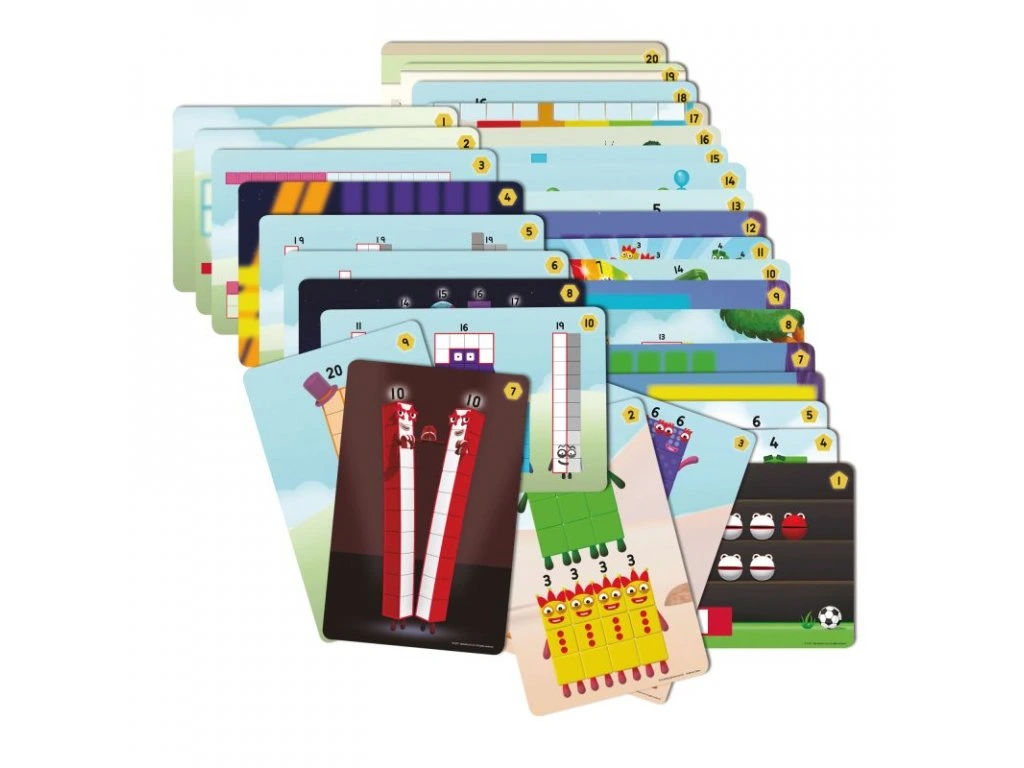 Děti mohou pomocí 10 barevných karet postav v sadě poznat kouzlo čísel za každým číselným blokem.