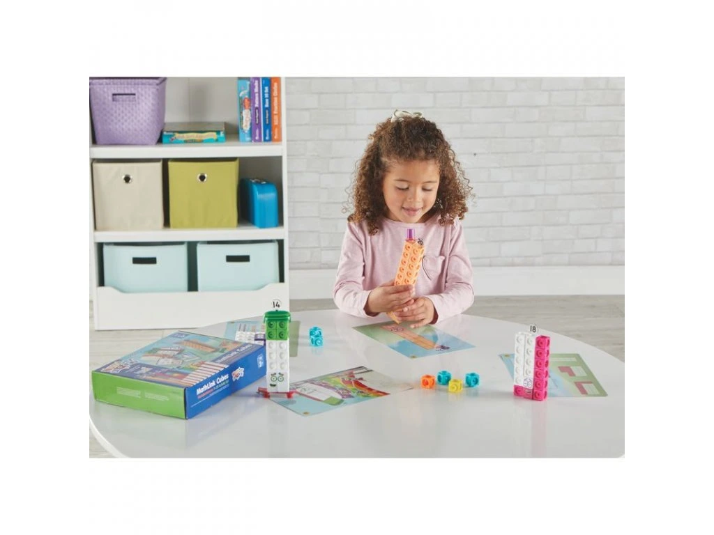 Sada obsahuje 155 číselných bloků MathLink kostek, 50 čelních štítků, 43 nálepek, 10 čísel, 10 karet postav, 15 oboustranných karet aktivit pro psaní a stírání, skateboard a helmu čtrnáctky, cylindr dvacítky a vícejazyčný průvodce doprovodnými aktivitami.