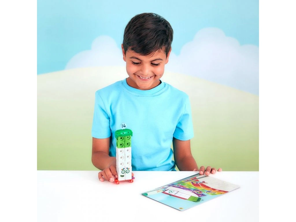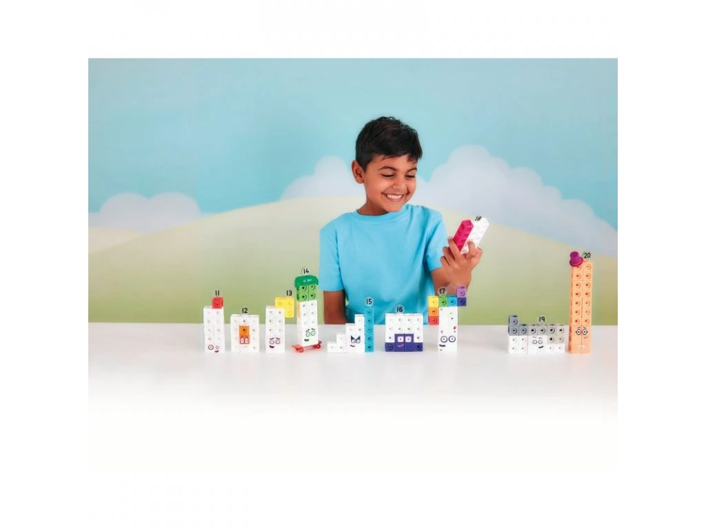 Přidejte nový rozměr do učení matematiky pomocí číselných bloků! Tato sada obsahuje vše, co děti potřebují k tomu, aby mohly používat speciální edici MathLink Cubes ke stavbě Numberblocks Eleven to Twenty všemi způsoby, které jsou uvedeny v epizodách.