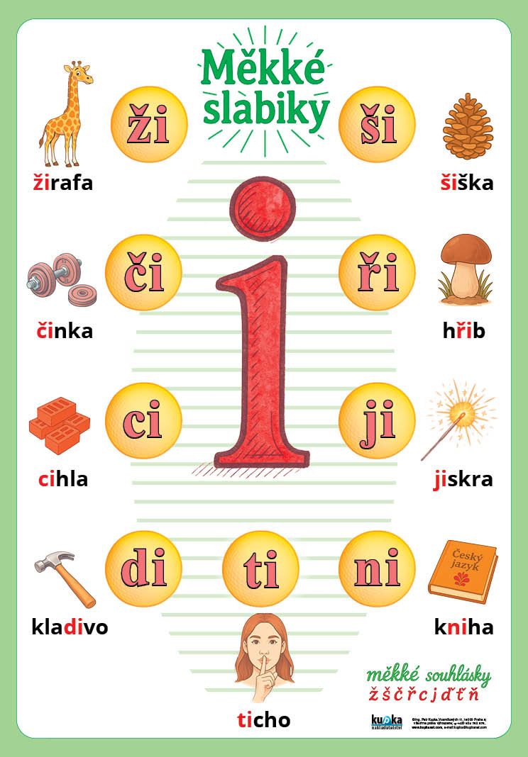 Nástěnný obraz pro výuku měkkých slabik v češtině.
