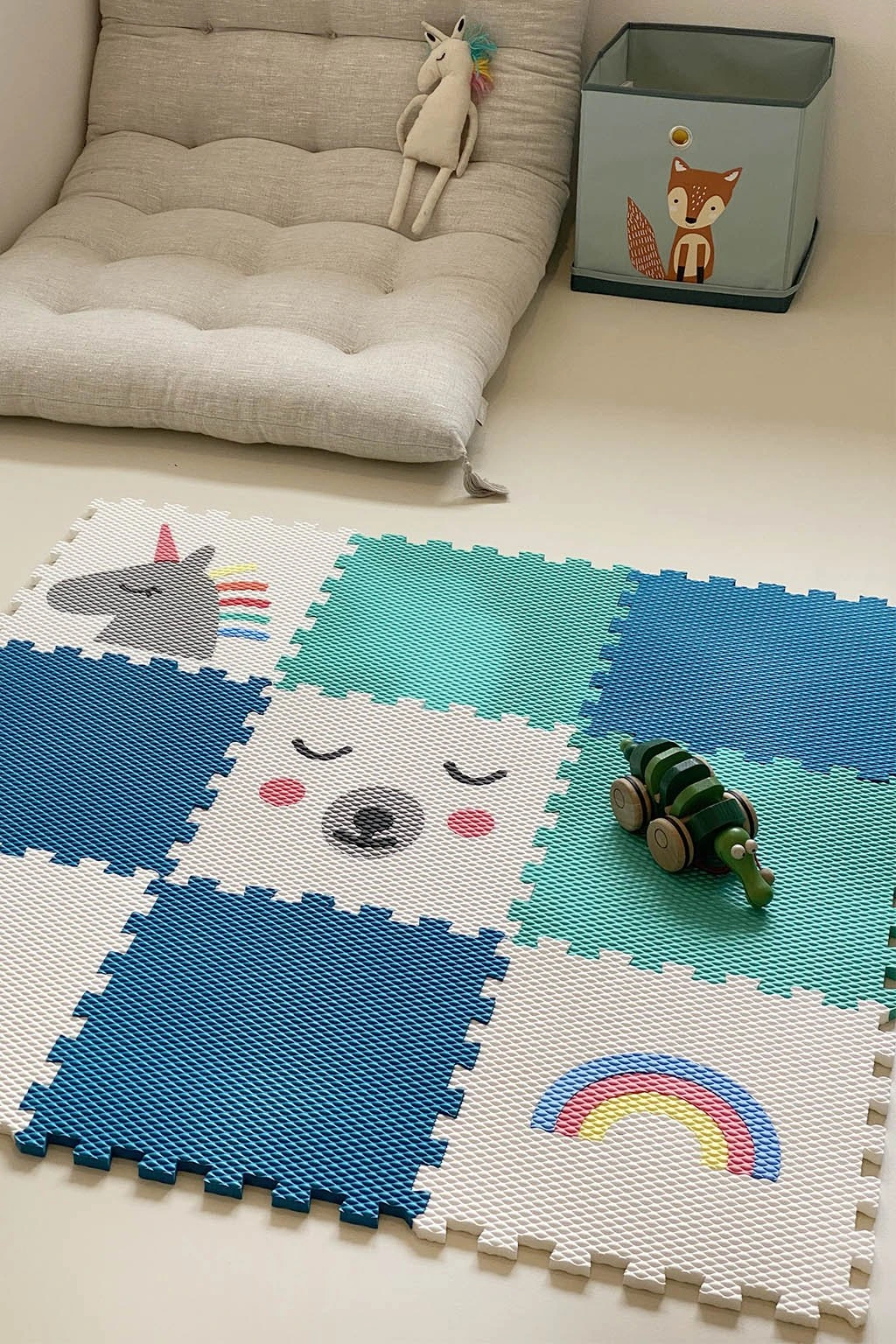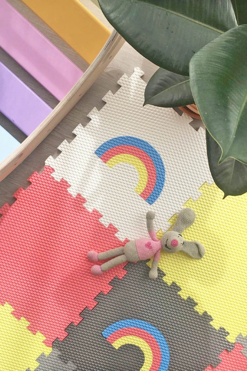 Puzzle díl Minideckfloor s motivem duhy, který rozzáří každý dětský koutek. Díky tomu, že všechny díly jsou vyndavací a snadno sestavitelné, se z podlahy stává skvělá skládačka, která zabaví děti na celé hodiny. Nejenže si s nimi pohrají, ale také budou rozvíjet jemnou motoriku, logické myšlení a kreativitu. Zároveň je podlaha vyrobená tak, aby šla přesouvat, aniž by se vám rozpadla. Vnitřní díly jsou o trošku větší než otvory do kterých se vkládají a tak uvnitř dobře drží. Design totiž dělají detaily. Pěnovou podlahu poskládáte během chviličky. Skládání je snadné. Jednotlivé díly do sebe zapadají jako puzzle. Díly přiložte zámky k sobě a jemně přitlačte.