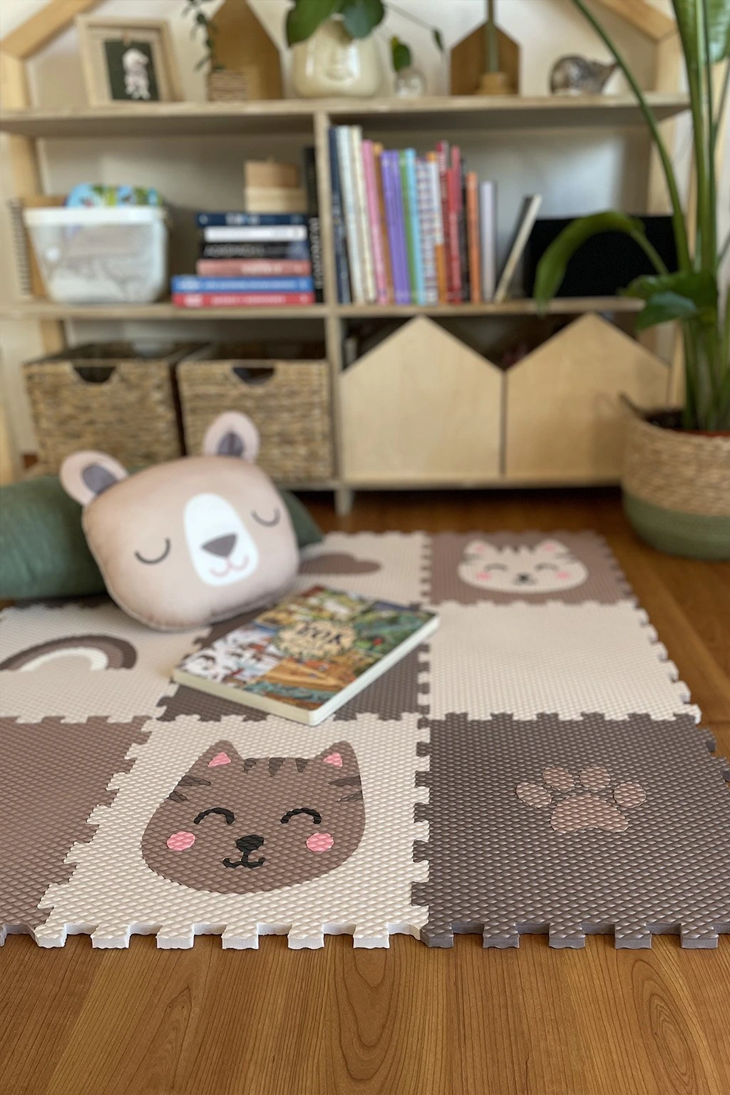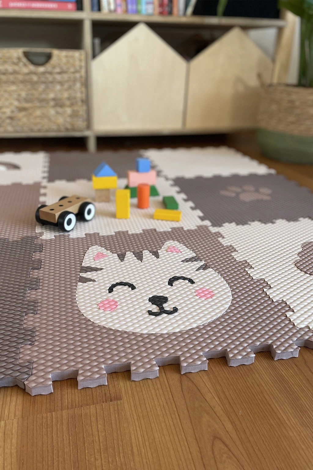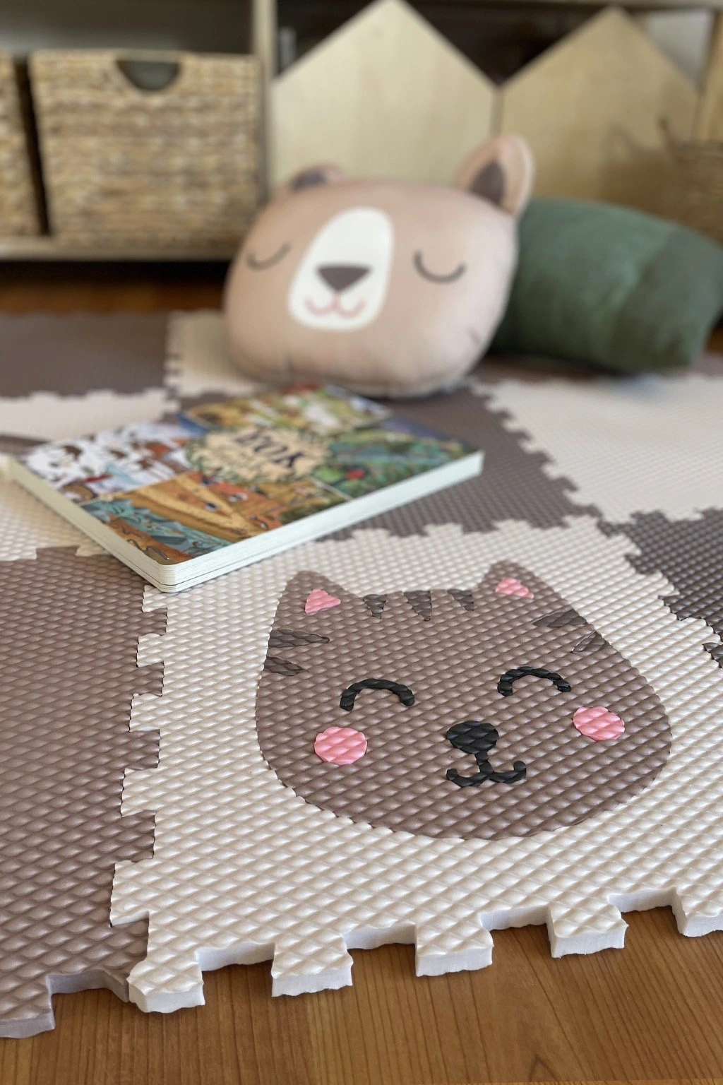 Podlahový puzzle díl s roztomilým motivem kočičky, který vytvoří dokonalé místo na hraní, lezení i odpočinek.