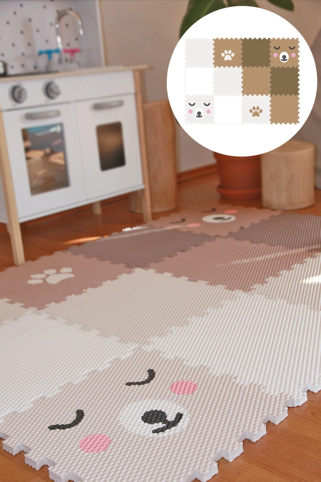 Dětská pěnová puzzle podlaha Minideckfloor nabízí měkkou a bezpečnou hrací plochu s veselými motivy méďů a tlapek. Sada obsahuje 12 dílů, které lze snadno spojovat i rozšiřovat. Podlaha skvěle tlumí nárazy, izoluje od chladu a je ideální pro hraní, lezení i první krůčky.