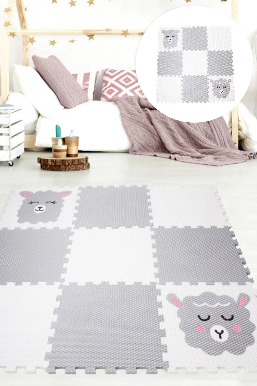 Dětská pěnová puzzle podlaha Minideckfloor nabízí měkkou a bezpečnou hrací plochu s veselými motivy beránka a lamy. Sada obsahuje 9 dílů, které lze snadno spojovat i rozšiřovat. Podlaha skvěle tlumí nárazy, izoluje od chladu a je ideální pro hraní, lezení i první krůčky.