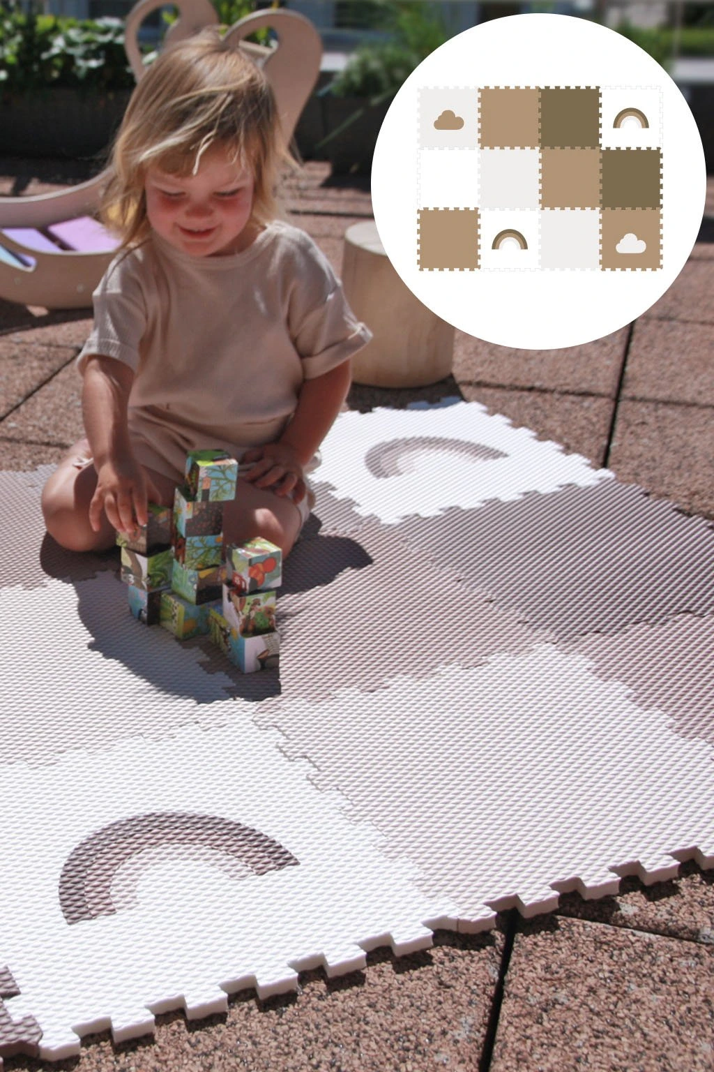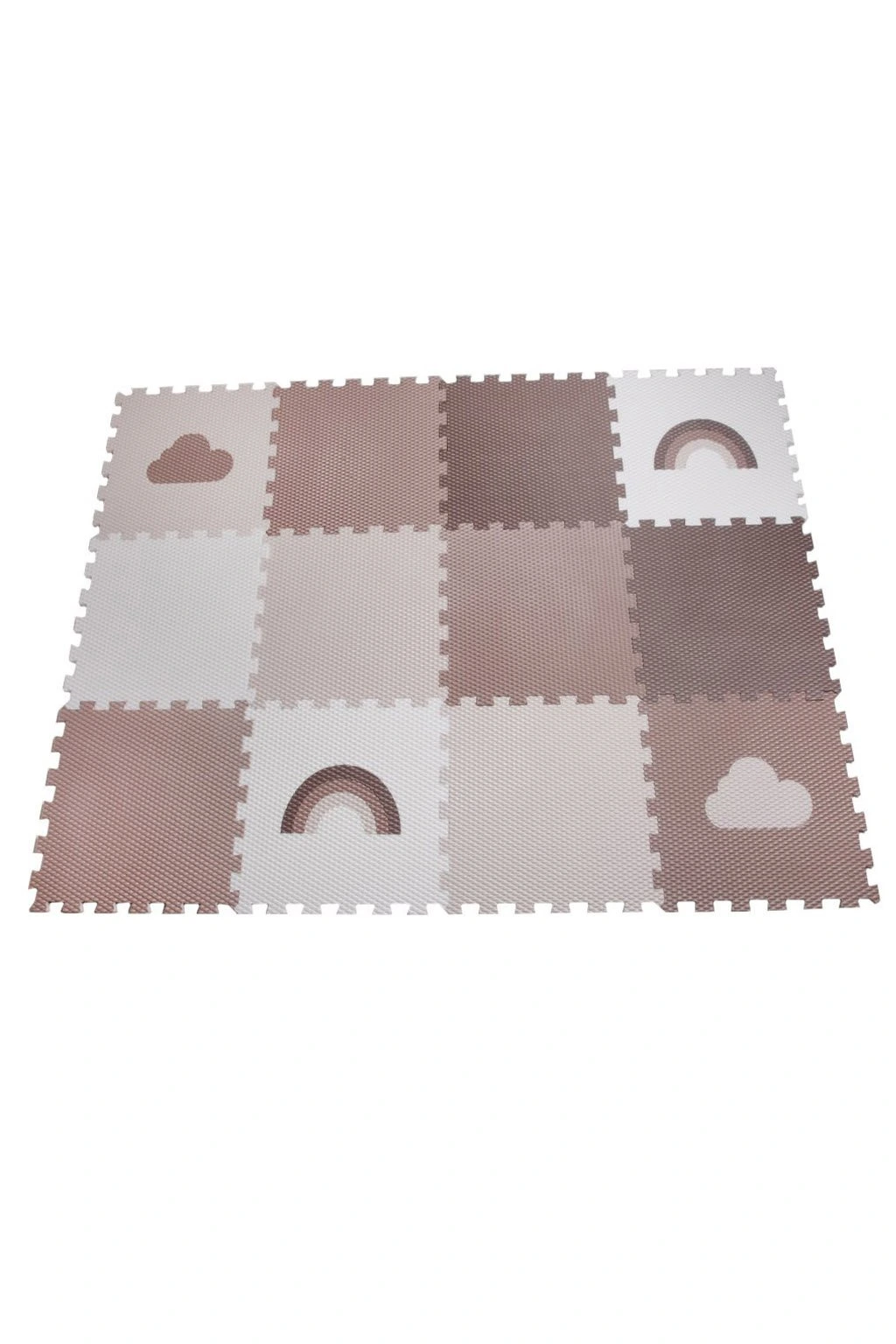 Dětská pěnová puzzle podlaha Minideckfloor nabízí měkkou a bezpečnou hrací plochu s veselými motivy duhy a mráčků. Sada obsahuje 12 dílů, které lze snadno spojovat i rozšiřovat. Podlaha skvěle tlumí nárazy, izoluje od chladu a je ideální pro hraní, lezení i první krůčky.