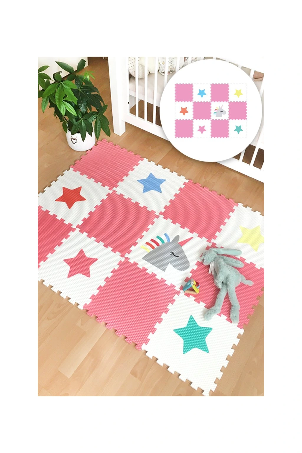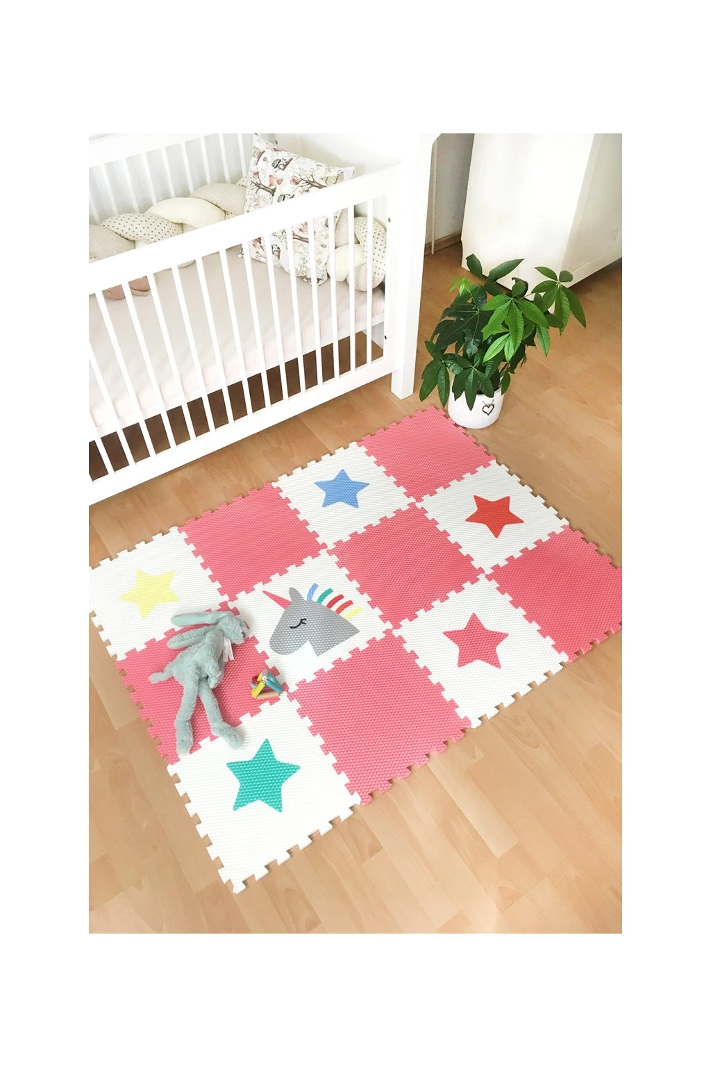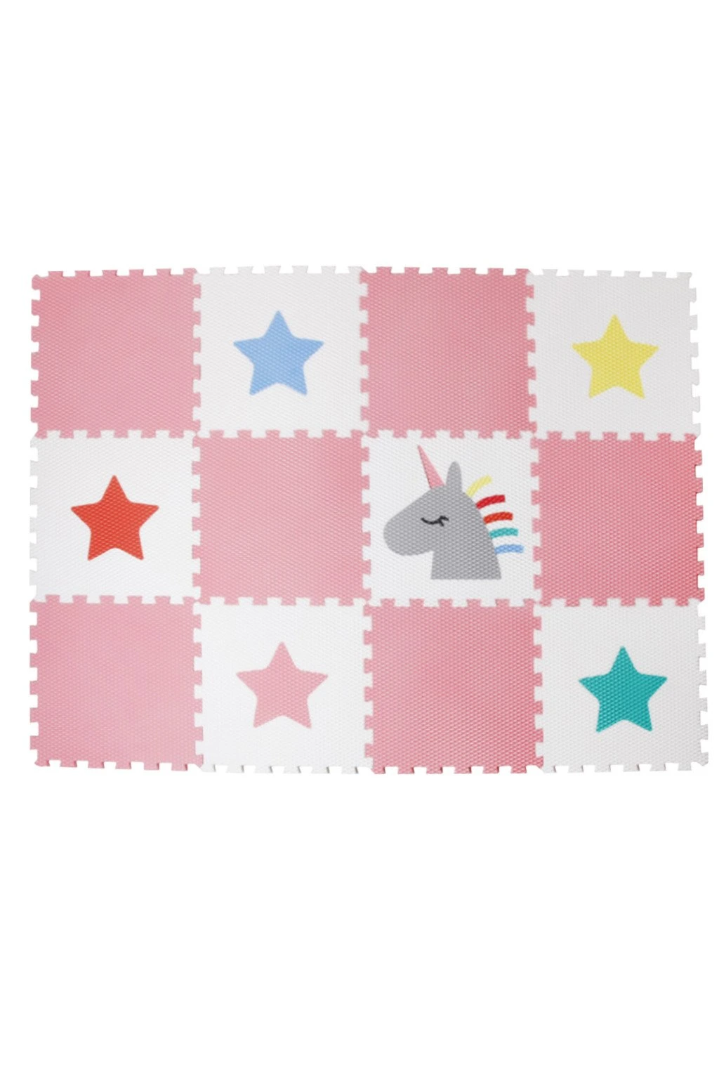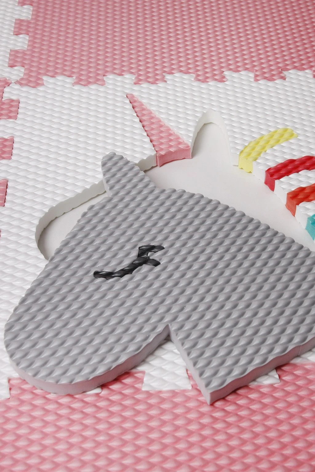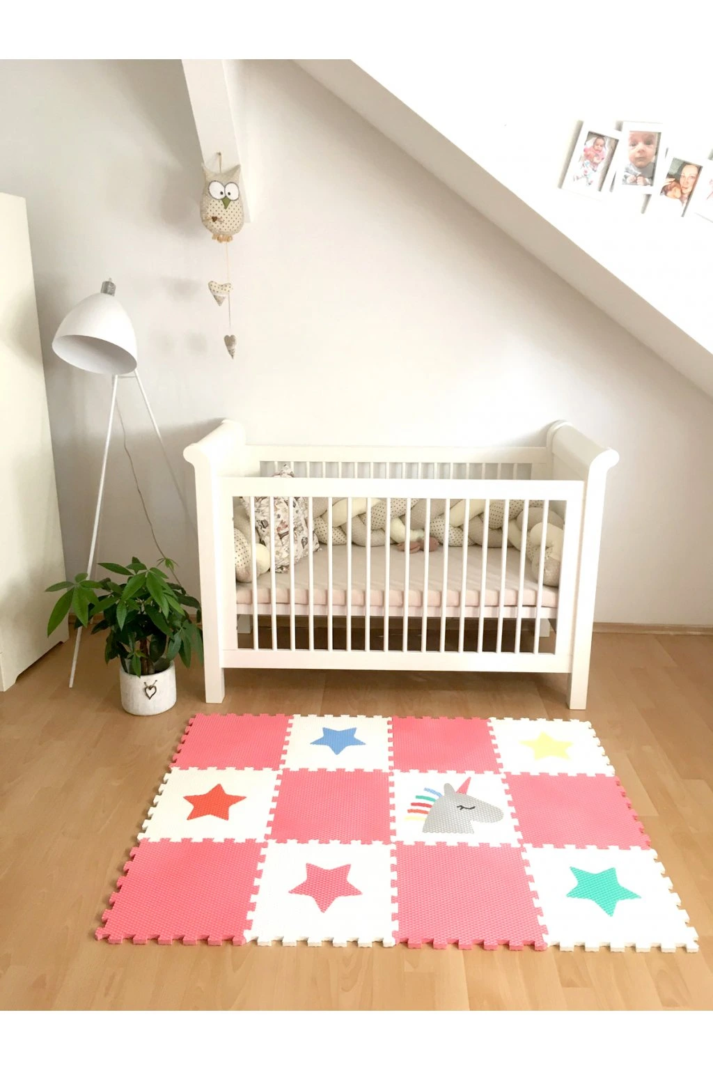 Dětská pěnová puzzle podlaha Minideckfloor nabízí měkkou a bezpečnou hrací plochu s veselými motivy jednorožce a hvězd. Sada obsahuje 12 dílů, které lze snadno spojovat i rozšiřovat. Podlaha skvěle tlumí nárazy, izoluje od chladu a je ideální pro hraní, lezení i první krůčky.