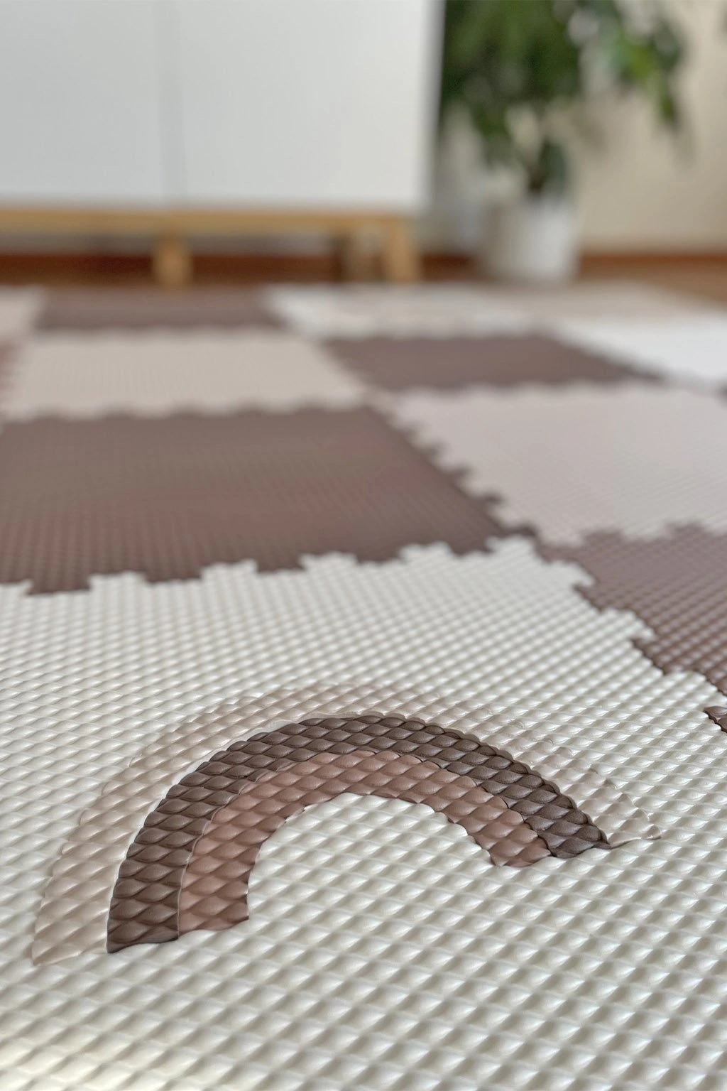 Pěnovou podlahu poskládáte během chviličky. Skládání je snadné. Jednotlivé díly do sebe zapadají jako puzzle. Díly přiložte zámky k sobě a jemně přitlačte.