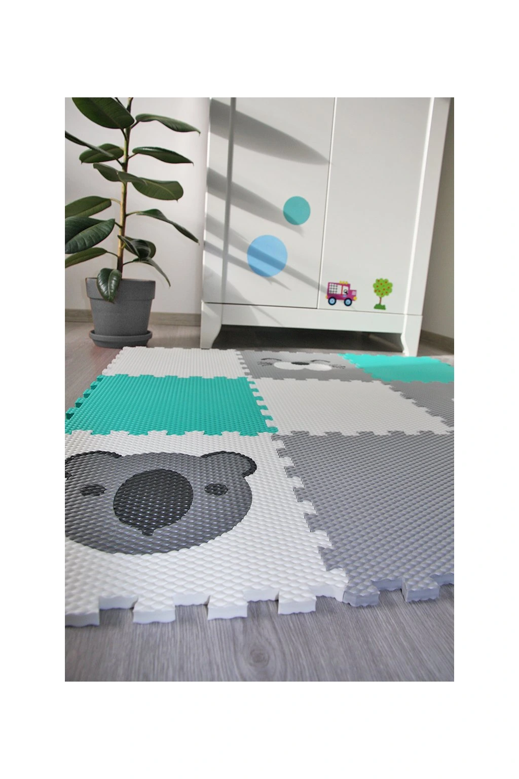 Dětská pěnová puzzle podlaha Minideckfloor nabízí měkkou a bezpečnou hrací plochu s veselými motivy koaly, tuleně a tlapky. Sada obsahuje 9 dílů, které lze snadno spojovat i rozšiřovat. Podlaha skvěle tlumí nárazy, izoluje od chladu a je ideální pro hraní, lezení i první krůčky.