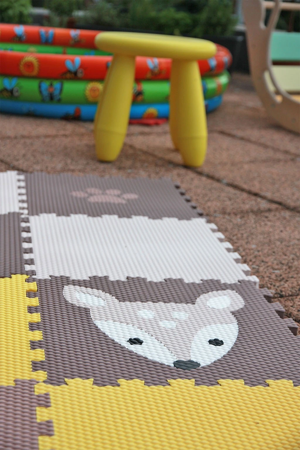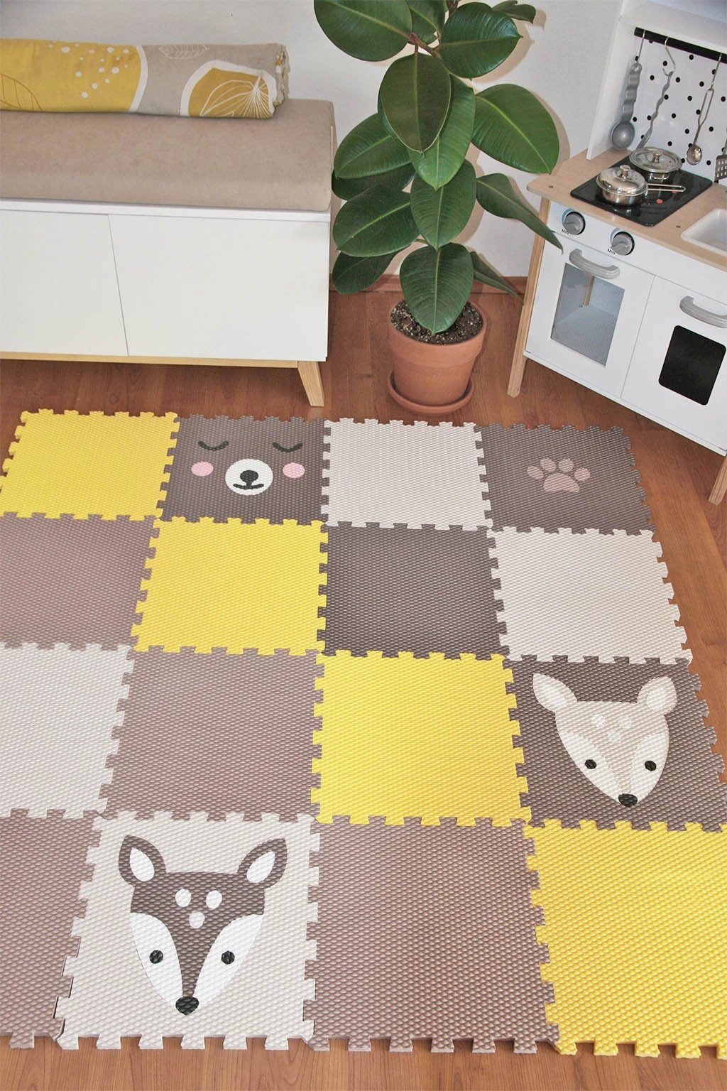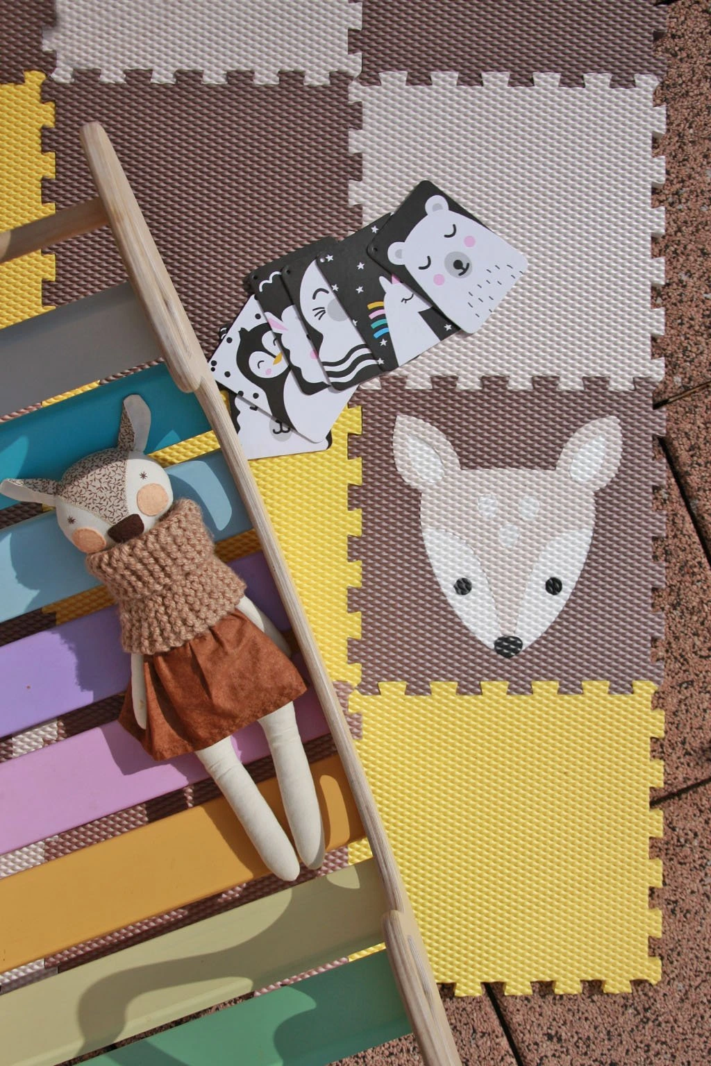 Dětská pěnová puzzle podlaha Minideckfloor nabízí měkkou a bezpečnou hrací plochu s veselými motivy koloušků, médi a tlapek. Sada obsahuje 16 dílů, které lze snadno spojovat i rozšiřovat. Podlaha skvěle tlumí nárazy, izoluje od chladu a je ideální pro hraní, lezení i první krůčky.