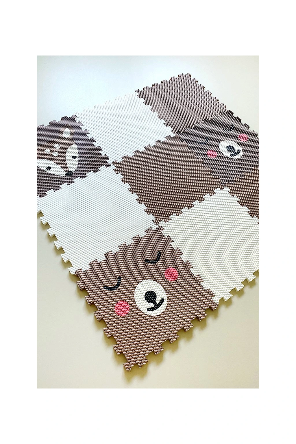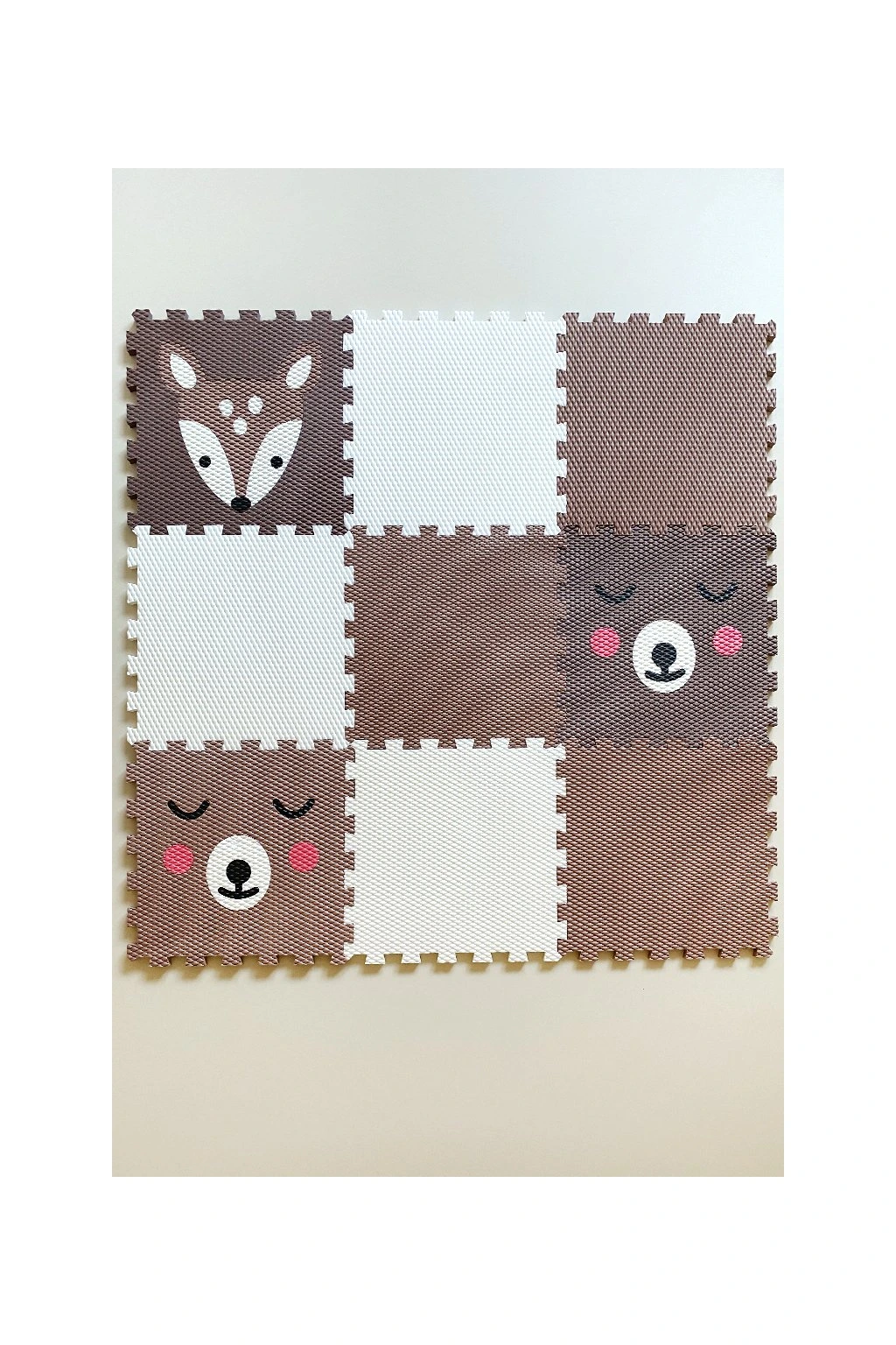 Dětská pěnová puzzle podlaha Minideckfloor nabízí měkkou a bezpečnou hrací plochu s veselými motivy kolouška a méďů. Sada obsahuje 9 dílů, které lze snadno spojovat i rozšiřovat. Podlaha skvěle tlumí nárazy, izoluje od chladu a je ideální pro hraní, lezení i první krůčky.