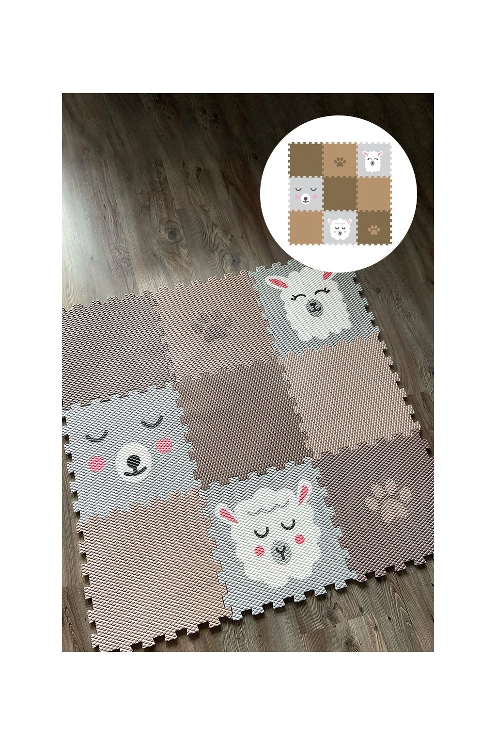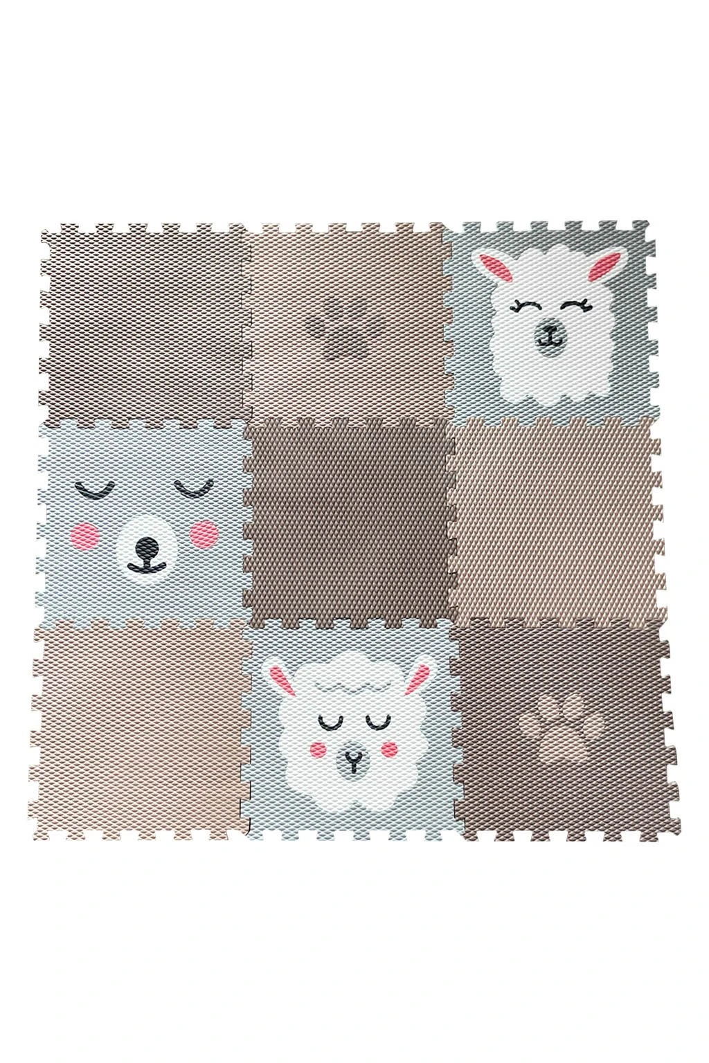 Dětská pěnová puzzle podlaha Minideckfloor nabízí měkkou a bezpečnou hrací plochu s veselými motivy médi, beránka, lamy a tlapky. Sada obsahuje 9 dílů, které lze snadno spojovat i rozšiřovat. Podlaha skvěle tlumí nárazy, izoluje od chladu a je ideální pro hraní, lezení i první krůčky.