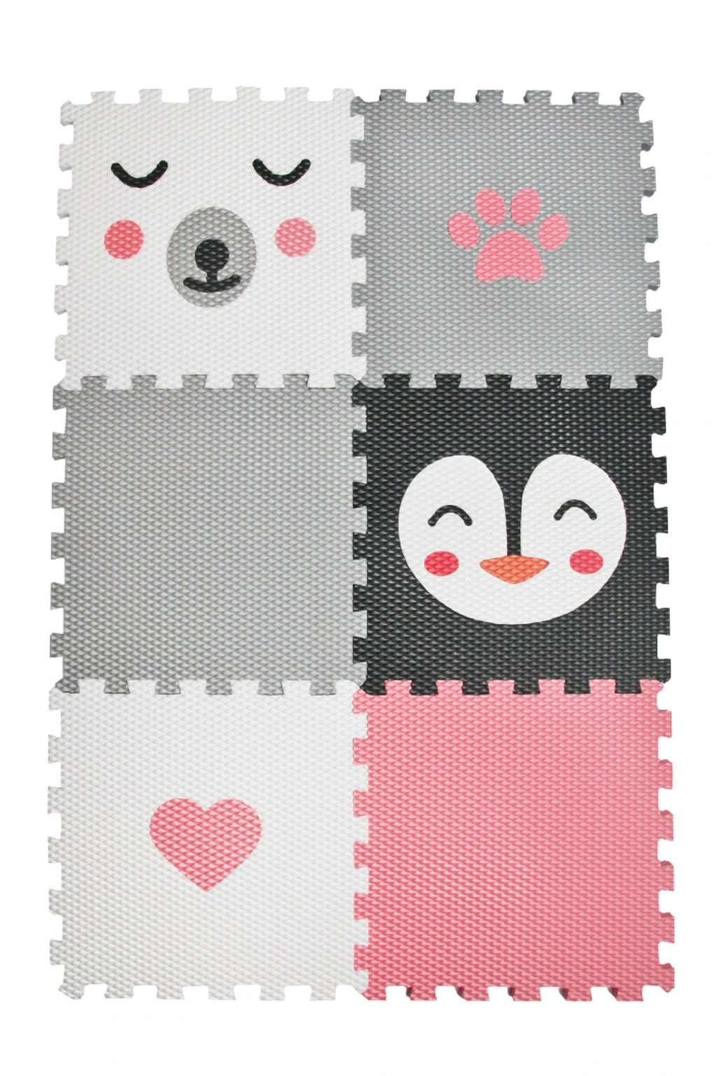 Dětská pěnová puzzle podlaha Minideckfloor nabízí měkkou a bezpečnou hrací plochu s veselými motivy médi, tučňáka, srdce a tlapky . Sada obsahuje 6 dílů, které lze snadno spojovat i rozšiřovat. Podlaha skvěle tlumí nárazy, izoluje od chladu a je ideální pro hraní, lezení i první krůčky.