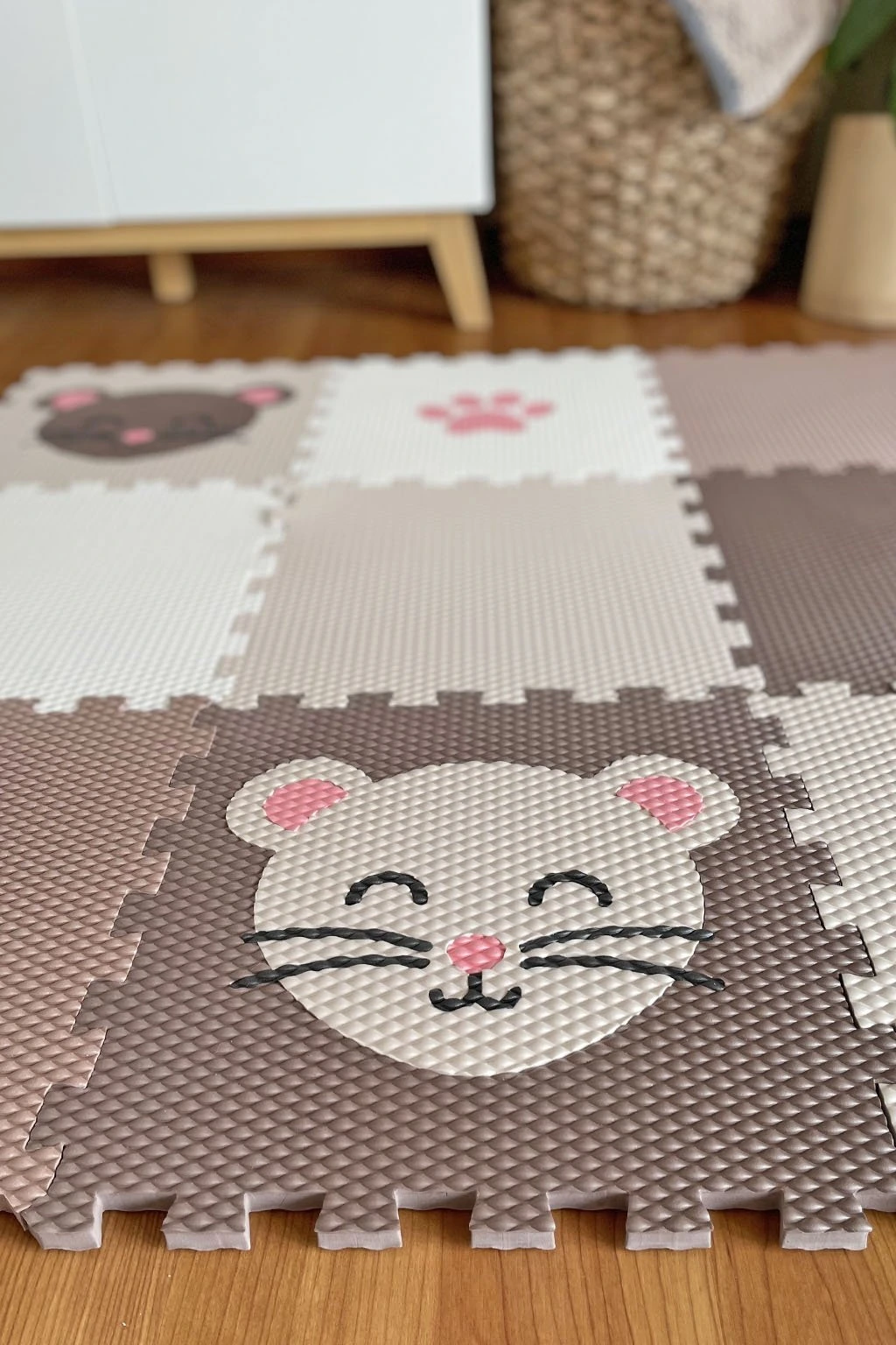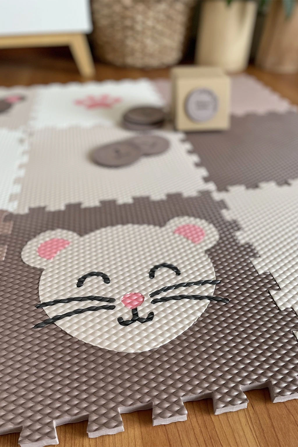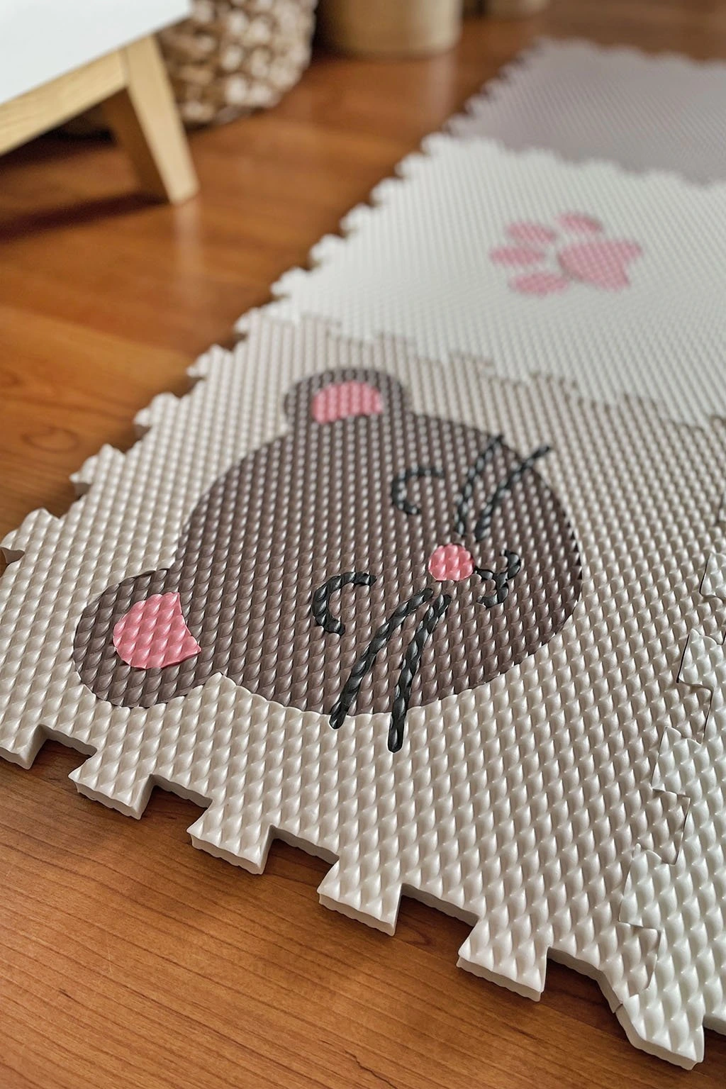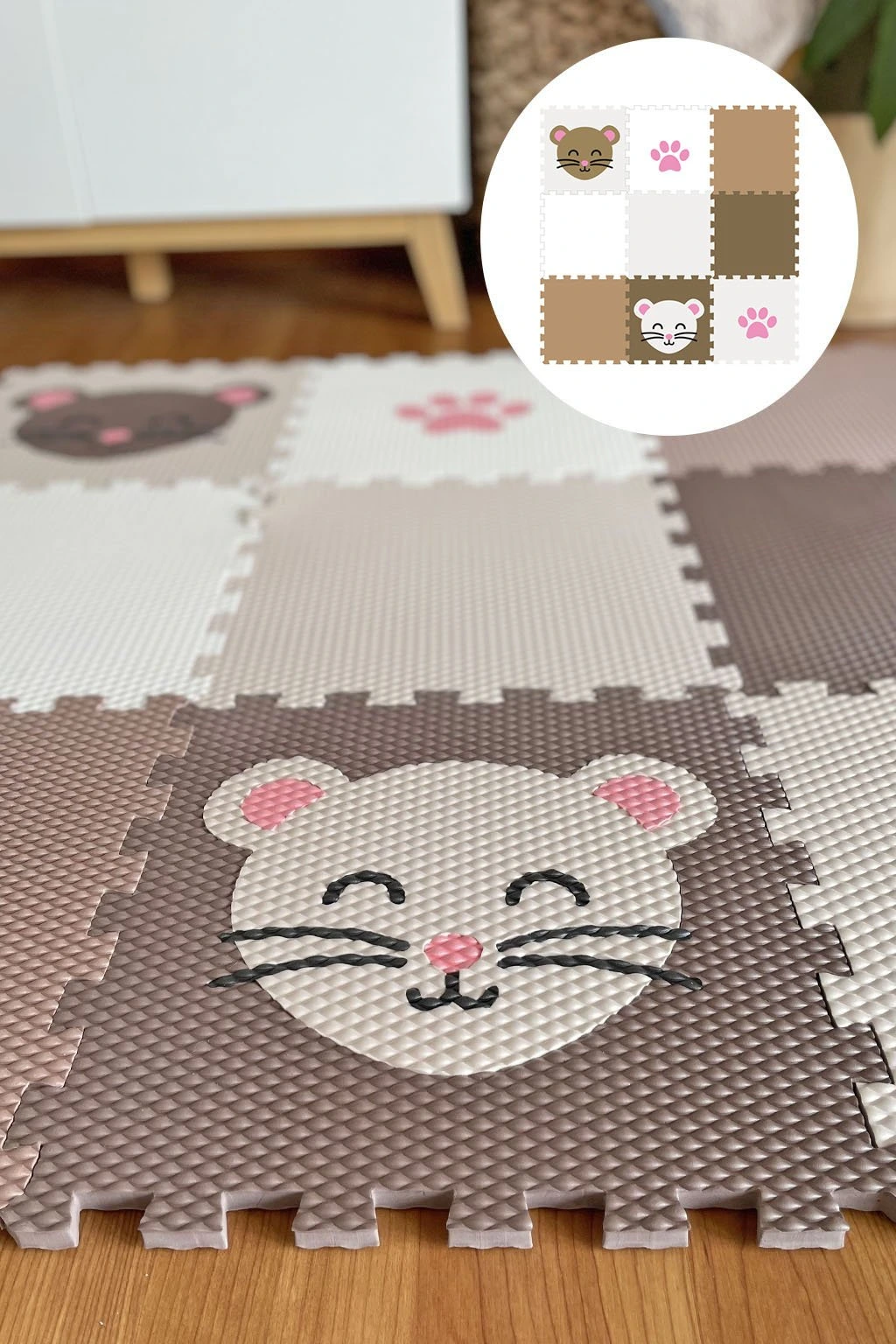 Dětská pěnová puzzle podlaha Minideckfloor nabízí měkkou a bezpečnou hrací plochu s veselými motivy myšky a tlapky. Sada obsahuje 9 dílů, které lze snadno spojovat i rozšiřovat. Podlaha skvěle tlumí nárazy, izoluje od chladu a je ideální pro hraní, lezení i první krůčky.