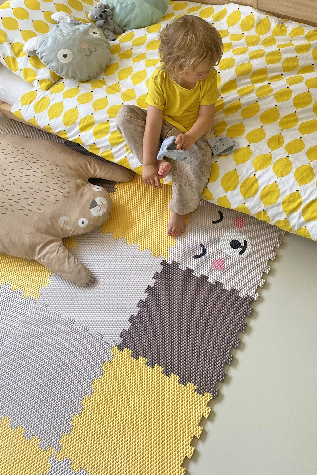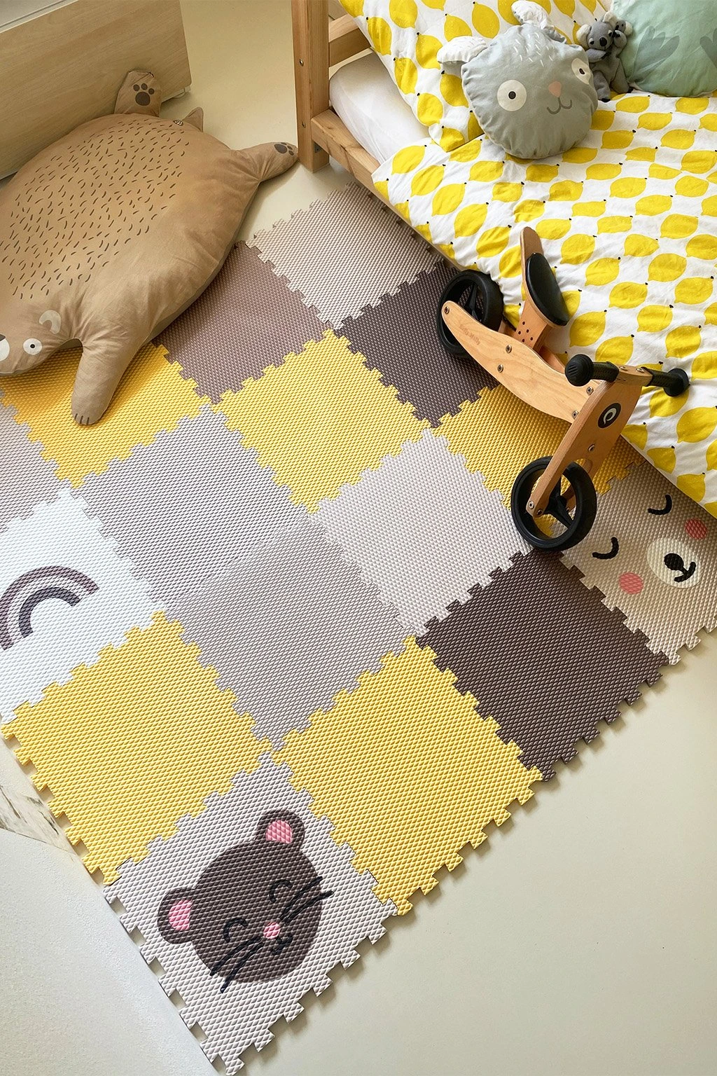 Díky tomu, že všechny díly jsou vyndavací a snadno sestavitelné, se z podlahy stává skvělá skládačka, která zabaví děti na celé hodiny. Nejenže si s nimi pohrají, ale také budou rozvíjet jemnou motoriku, logické myšlení a kreativitu. Zároveň je podlaha vyrobená tak, aby šla přesouvat, aniž by se vám rozpadla. Vnitřní díly jsou o trošku větší než otvory do kterých se vkládají a tak uvnitř dobře drží. Design totiž dělají detaily.