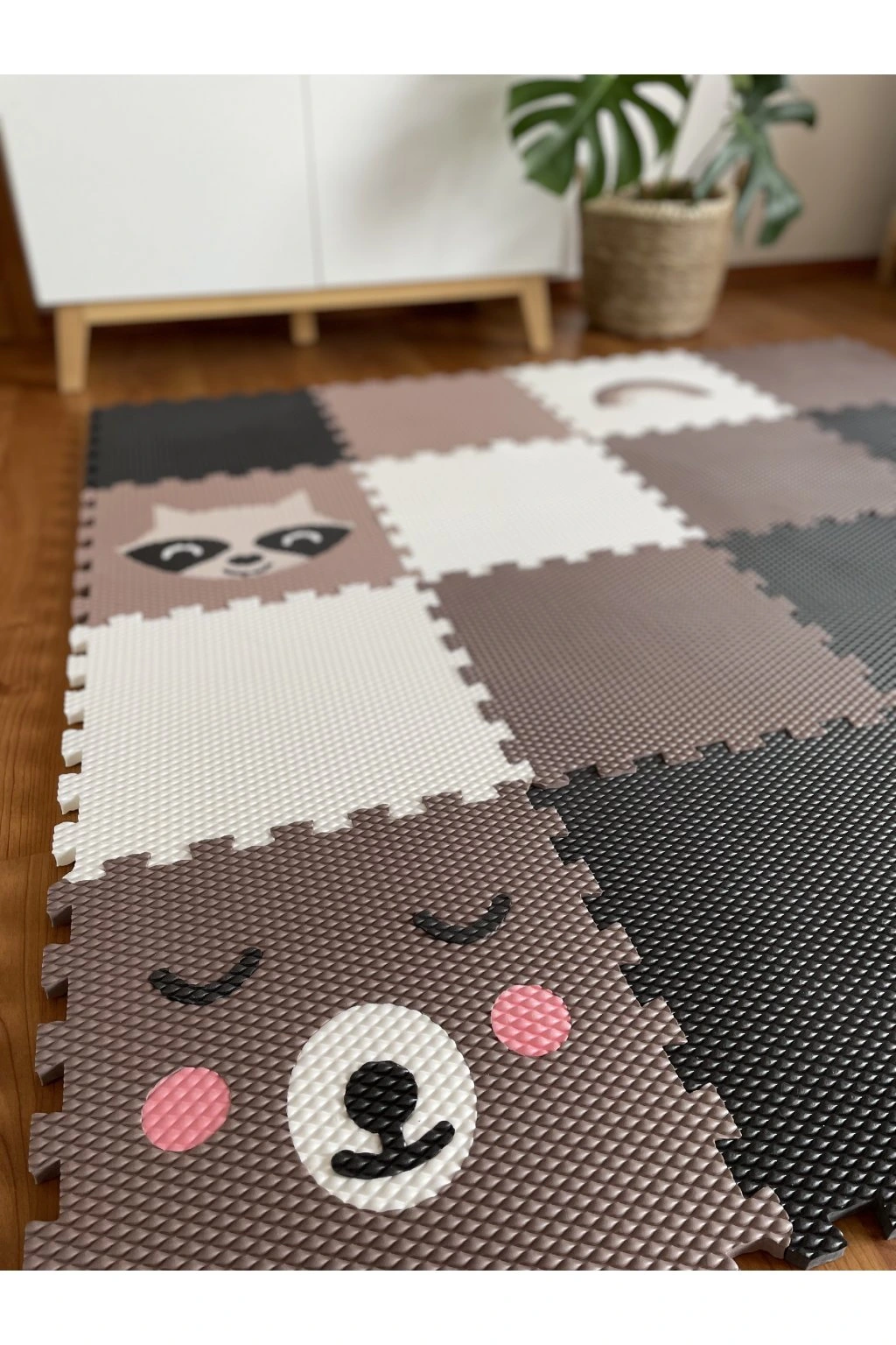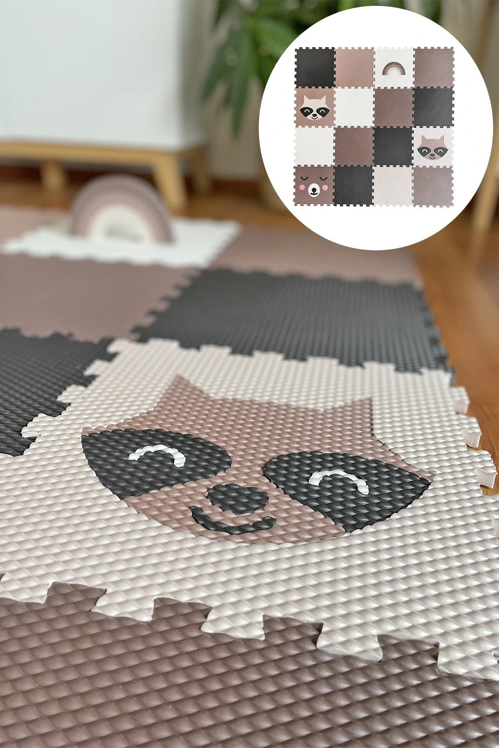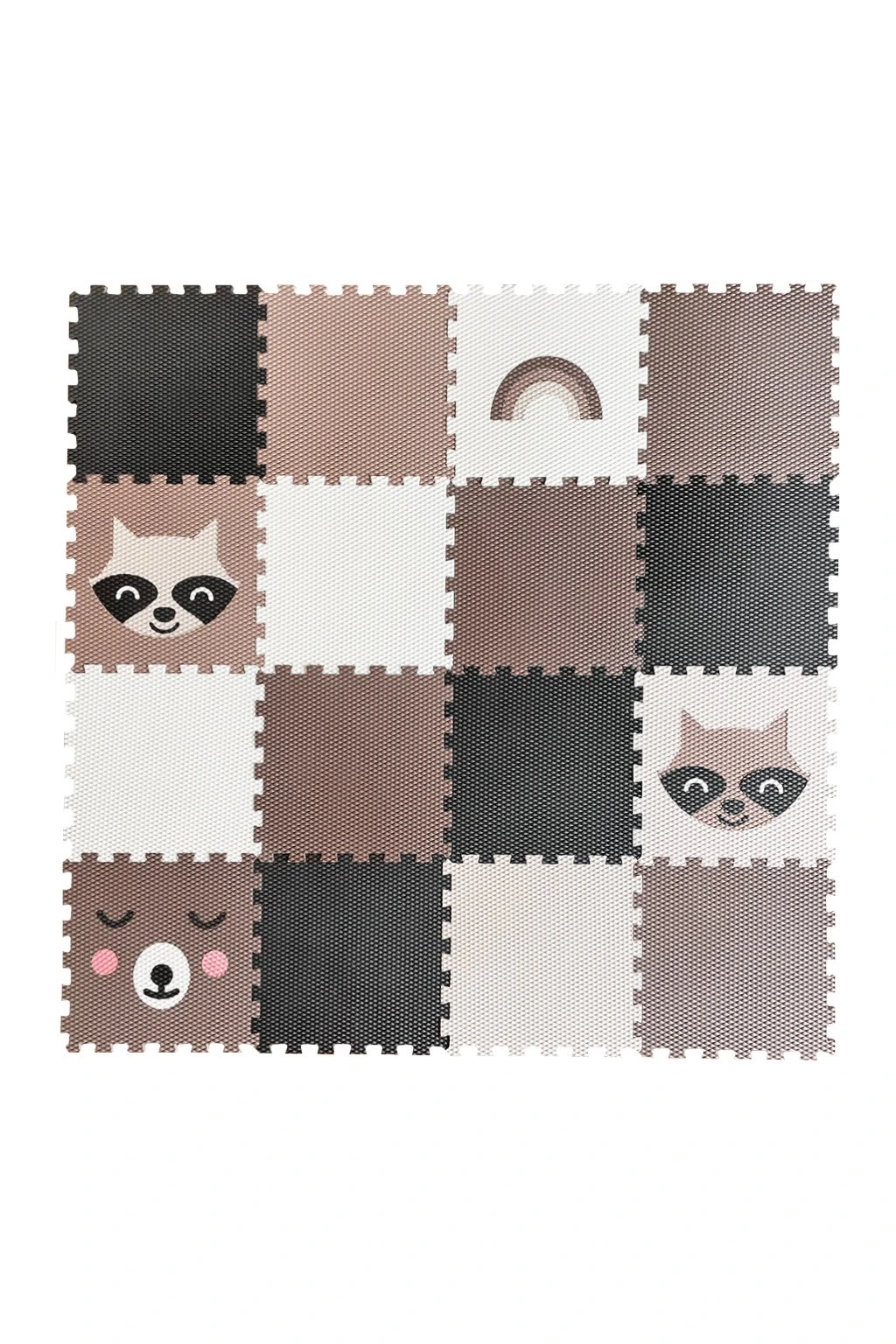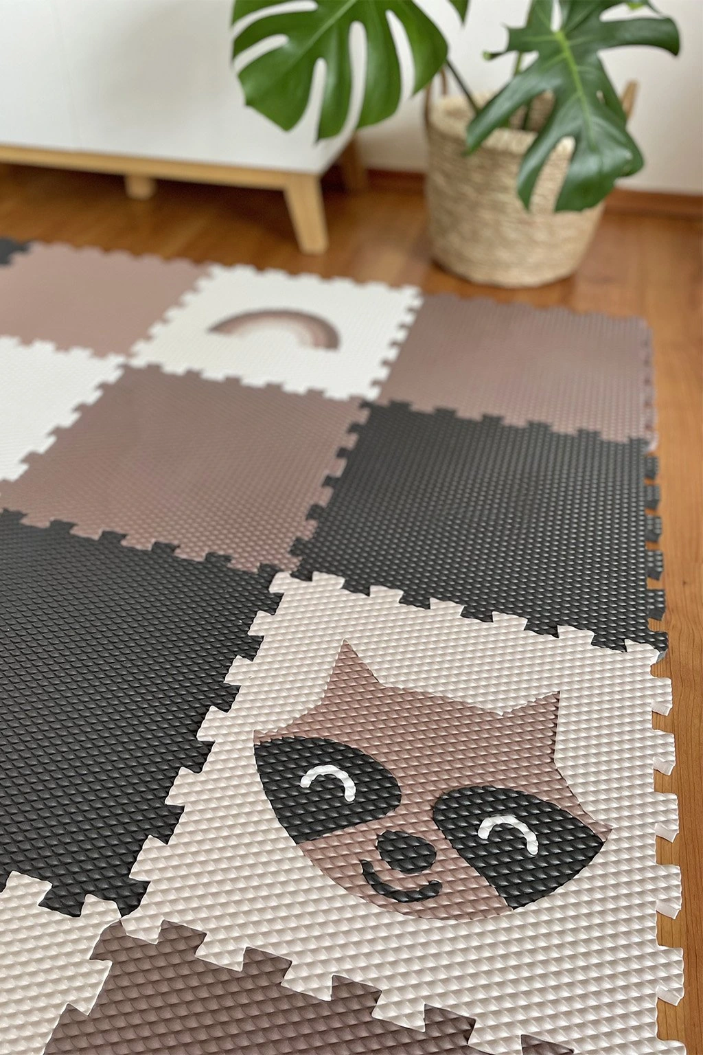 Dětská pěnová puzzle podlaha Minideckfloor nabízí měkkou a bezpečnou hrací plochu s veselými motivy mývala, médi a duhy. Sada obsahuje 16 dílů, které lze snadno spojovat i rozšiřovat. Podlaha skvěle tlumí nárazy, izoluje od chladu a je ideální pro hraní, lezení i první krůčky.