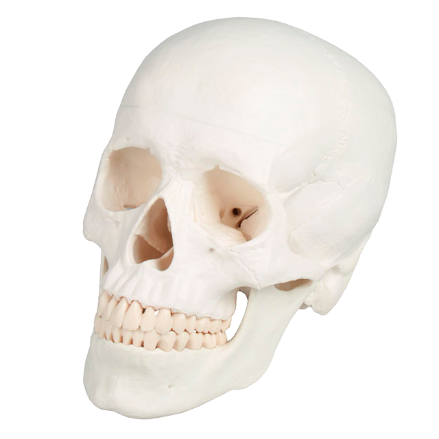 Při vývoji tohoto modelu lidské lebky jsme použili nejnovější technologii pro digitalizaci reálné lidské lebky a idealizovali ji podle aspektů zdravotnické výchovy. To znamená, že lebka byla upravena tak, aby byla anatomicky věrná a aby zachycovala všechny anatomické detaily a struktury. Třídílný model se skládá z horní části lebky, spodní části lebky a dolní čelisti. Zuby odpovídají skutečnému chrupu. Dolní čelist je pohyblivá a je možné ji odstranit. Horní část lebky je se spodní částí zarovnána pomocí kovových kolíků, pevné spojení zajišťují silné magnety. Ke spojení tak nejsou nutné háčky a plastové kolíky, které by se mohly zlomit. To odlišuje tento model od konkurenčních modelů s plastovými kolíky a rušivými kovovými háčky. Model odpovídá rozměrům lebky průměrného dospělého evropana. Díky moderním výrobním technologiím a vysokému objemu výroby lze tento velmi úspěšný model nabídnout za velmi přijatelnou cenu.