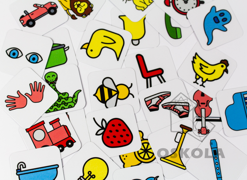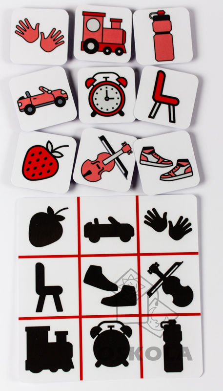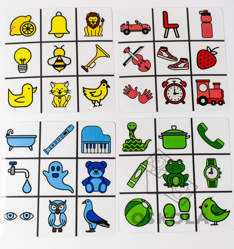 Tato hra je navržena speciálně pro podporu vývoje slovní zásoby a porozumění, a to zábavnou a interaktivní formou. Sada obsahuje čtyři velké oboustranné karty – na jedné straně karty jsou barevné obrázky slov a na druhé straně jejich stíny. K tomu je připojeno 36 malých kartiček, na nichž jsou obrázky slov, která odpovídají těm na velkých kartách. Každý obrázek je doplněn jednoduchým citoslovcem, což pomáhá dětem rozpoznat zvuky spojené s daným objektem nebo akcí.