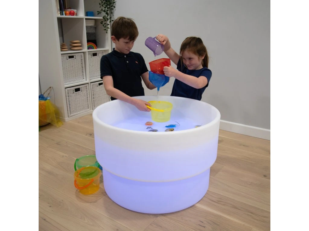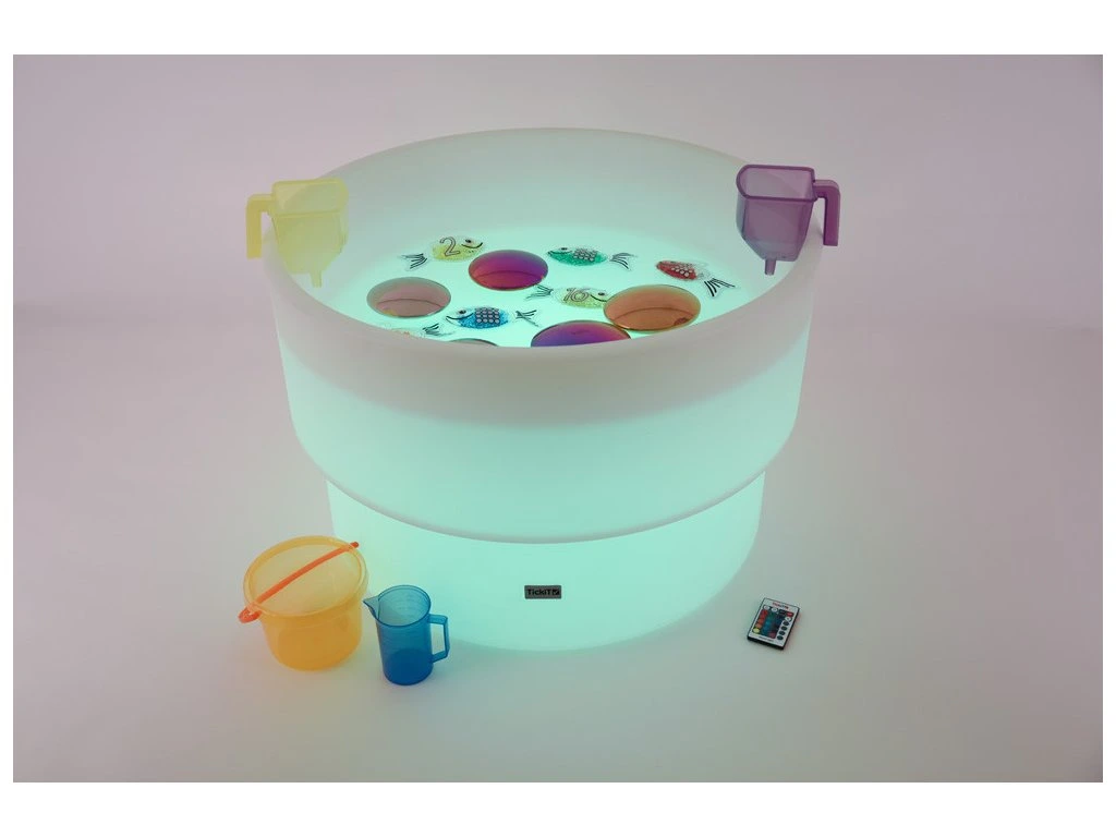 Objevte jedinečný zážitek z učení, hraní i relaxace se světelným senzorickým stolem, který je navržen pro rozvoj dětí v mateřských školách, hernách i domácím prostředí. Kulatý stůl s proměnlivým podsvícením nabízí široké spektrum barev a režimů, které stimulují smysly a podporují učení hrou. Dřevěný rozdělovač umožňuje vytvářet různé herní či výukové zóny – ideální pro třídění, experimentování nebo samostatnou práci.